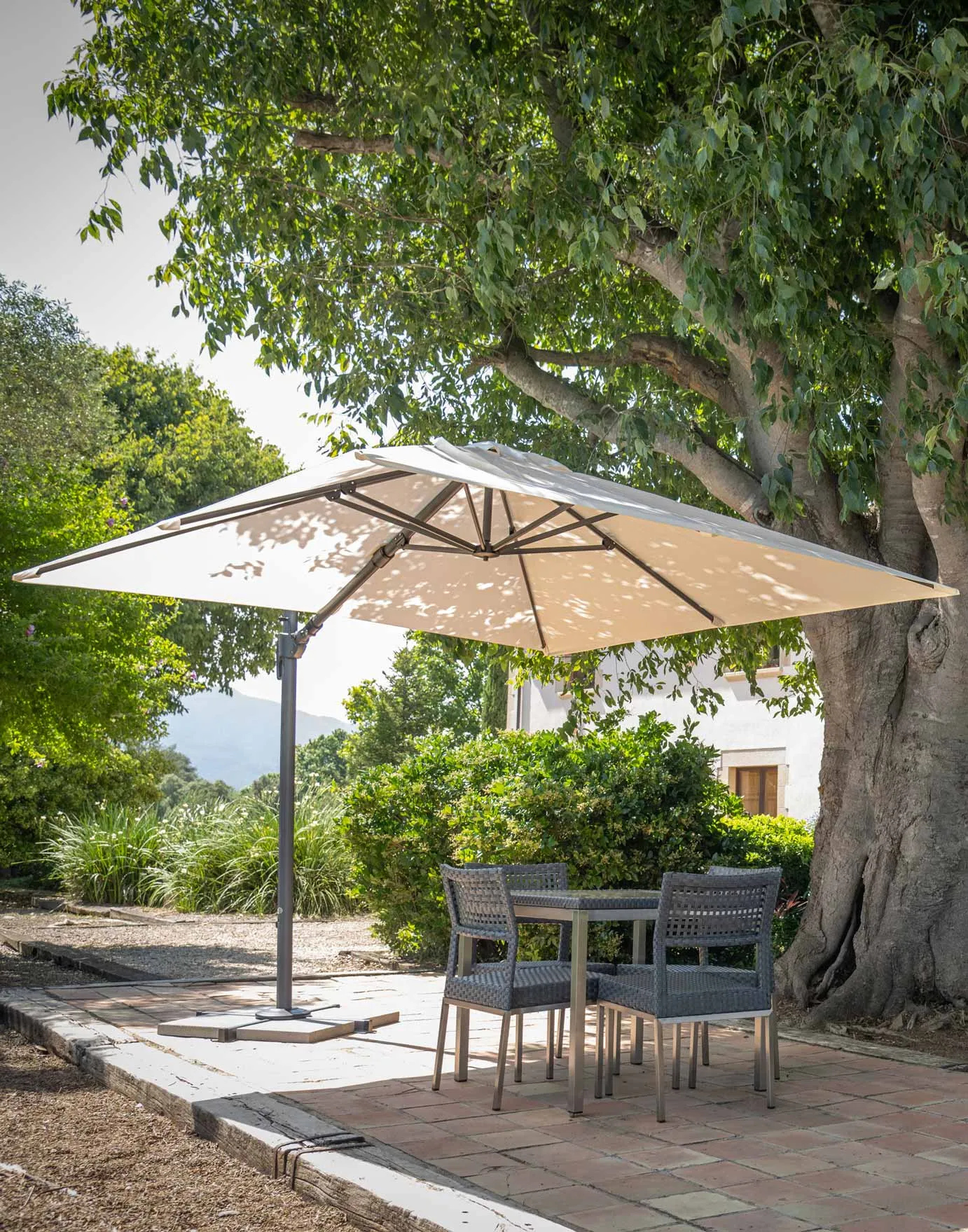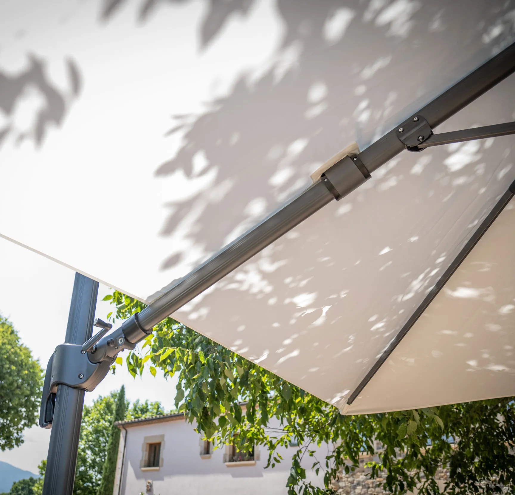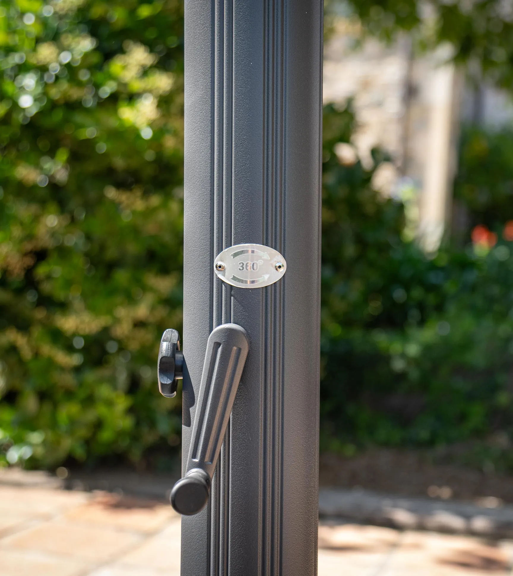 Pisa is a practical and sturdy side-post parasol, designed to provide functional shade and style on terraces and gardens.