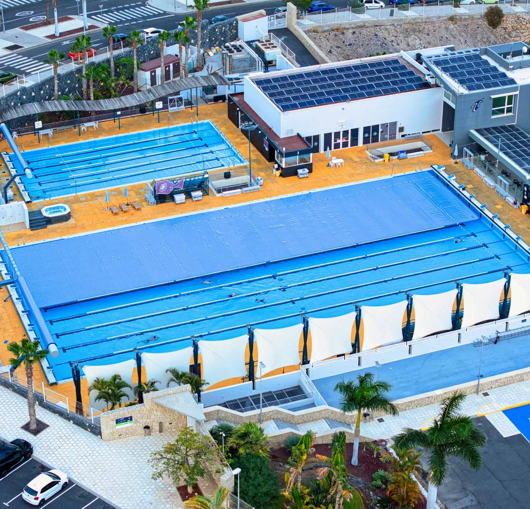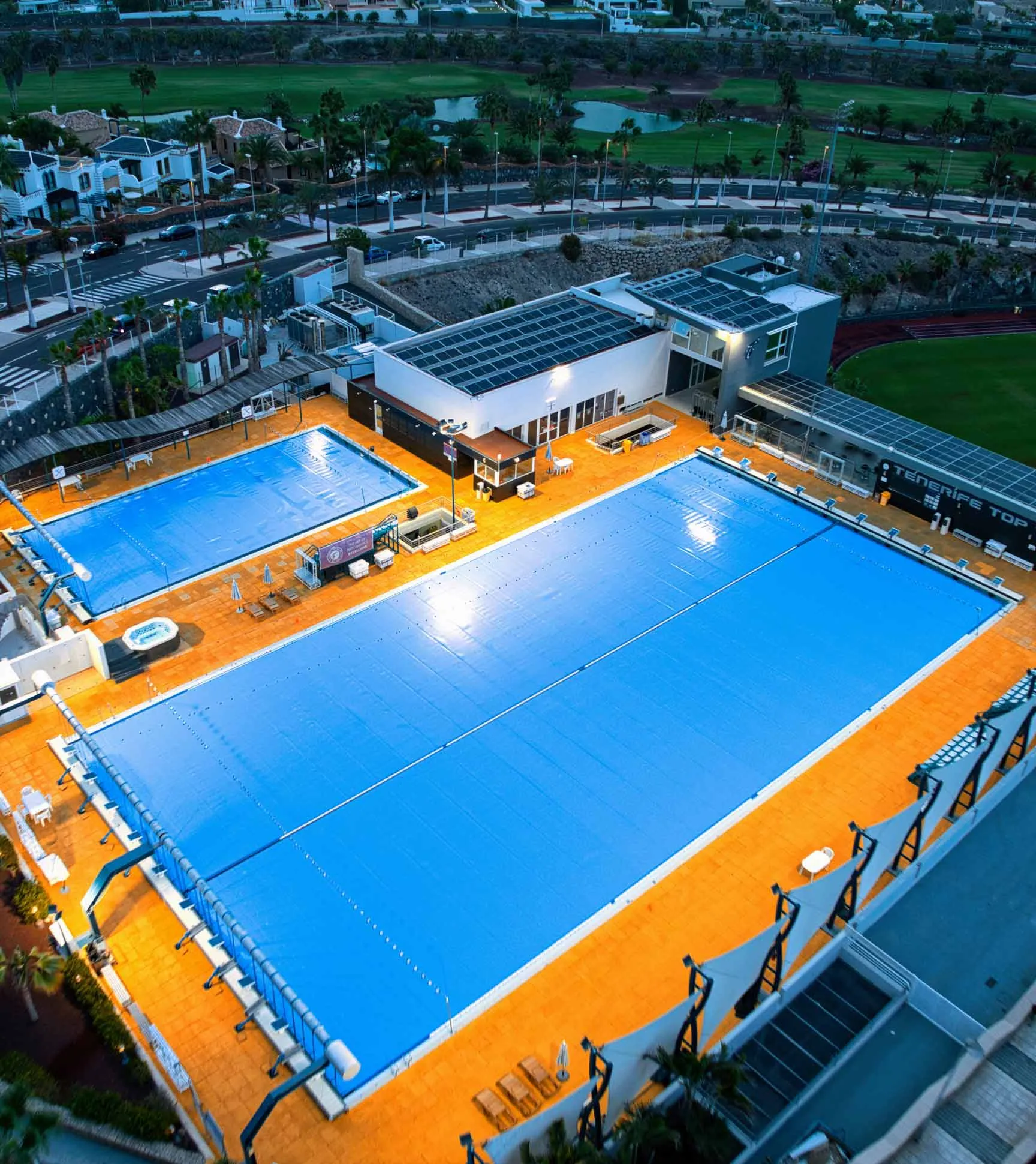 At Tenerife Top Training, we designed and installed an 8 mm Superflex Mousse macro-cover to protect the Olympic pool (50 × 25 m) and the training pool (25 × 12.50 m). A high-performance solution for a centre that operates at a daily rhythm: reduced evaporation, improved thermal preservation, and easier maintenance, supported by engineering that works discreetly.