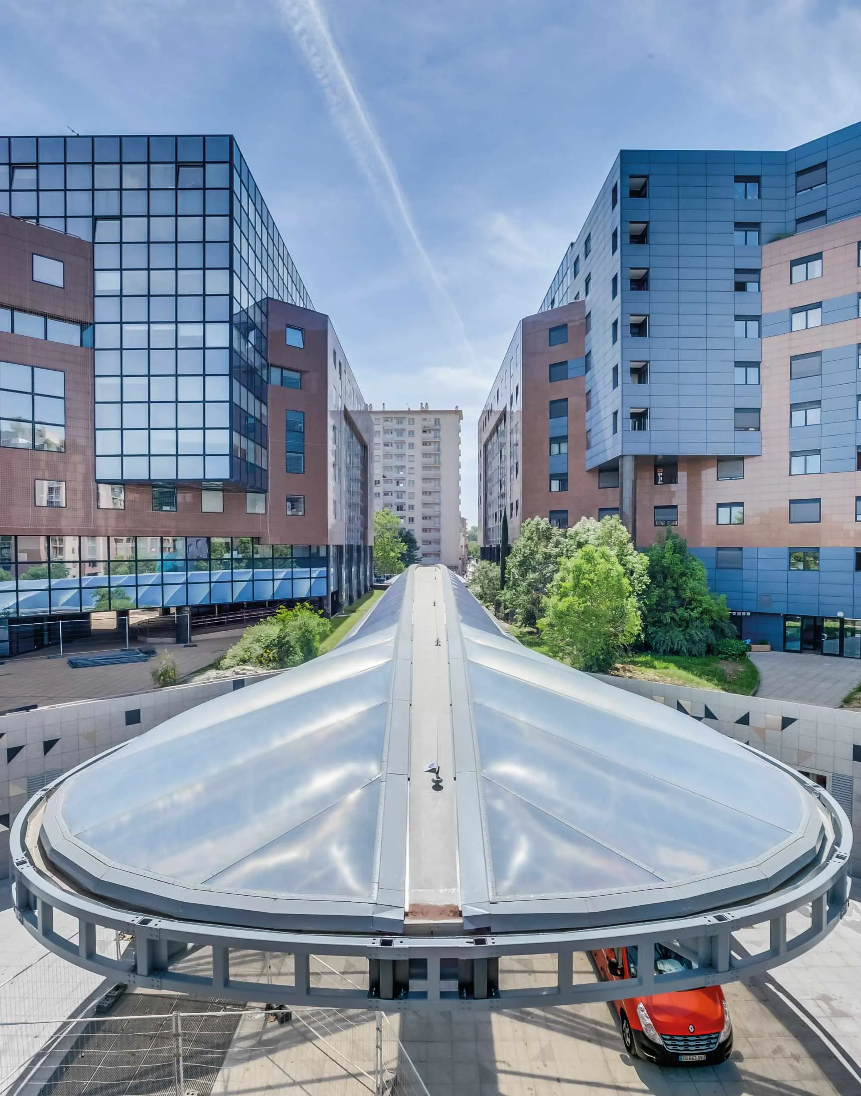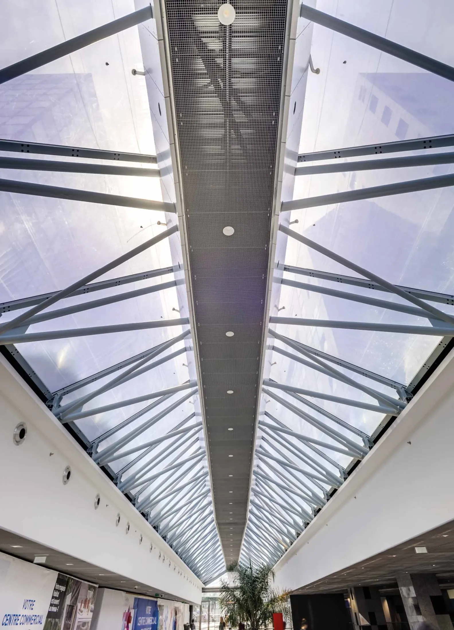 CC Réflets Compans located in the heart of Toulouse, France, has been rehabilitated and expanded. In the framework of this refurbishment, the old glass cover has been replaced; also in the entrances two new rackets have been created with the objective of drawing the attention of the passer-by and inviting them to enter the shopping centre.