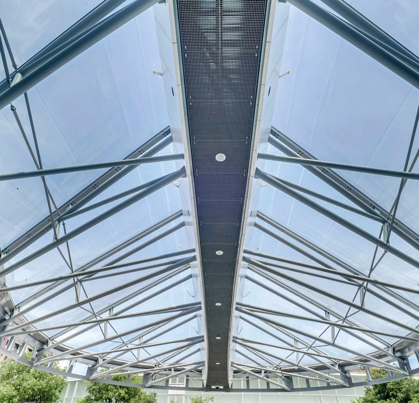 IASO carried out this work under its AVIS TECHNIQUE, which certifies the ETFE cushion system. The new deck has 72 ETFE cushions located along the shopping arcade. All of them are composed of 2 or 3 layers, each of which has different characteristics . This work was carried out under the approved system of the AVIS TECHNIQUE of IASO for ETFE cushions.