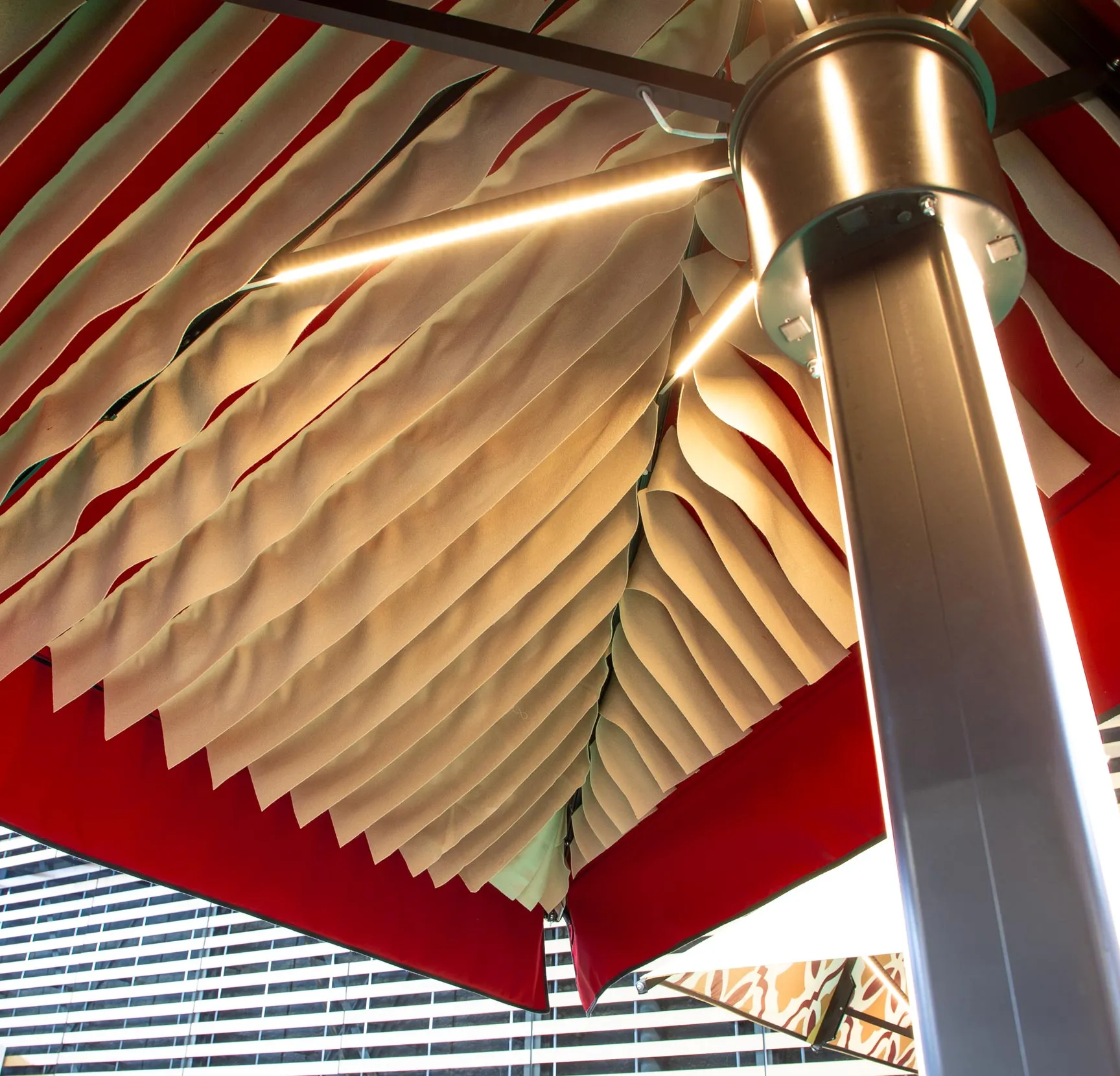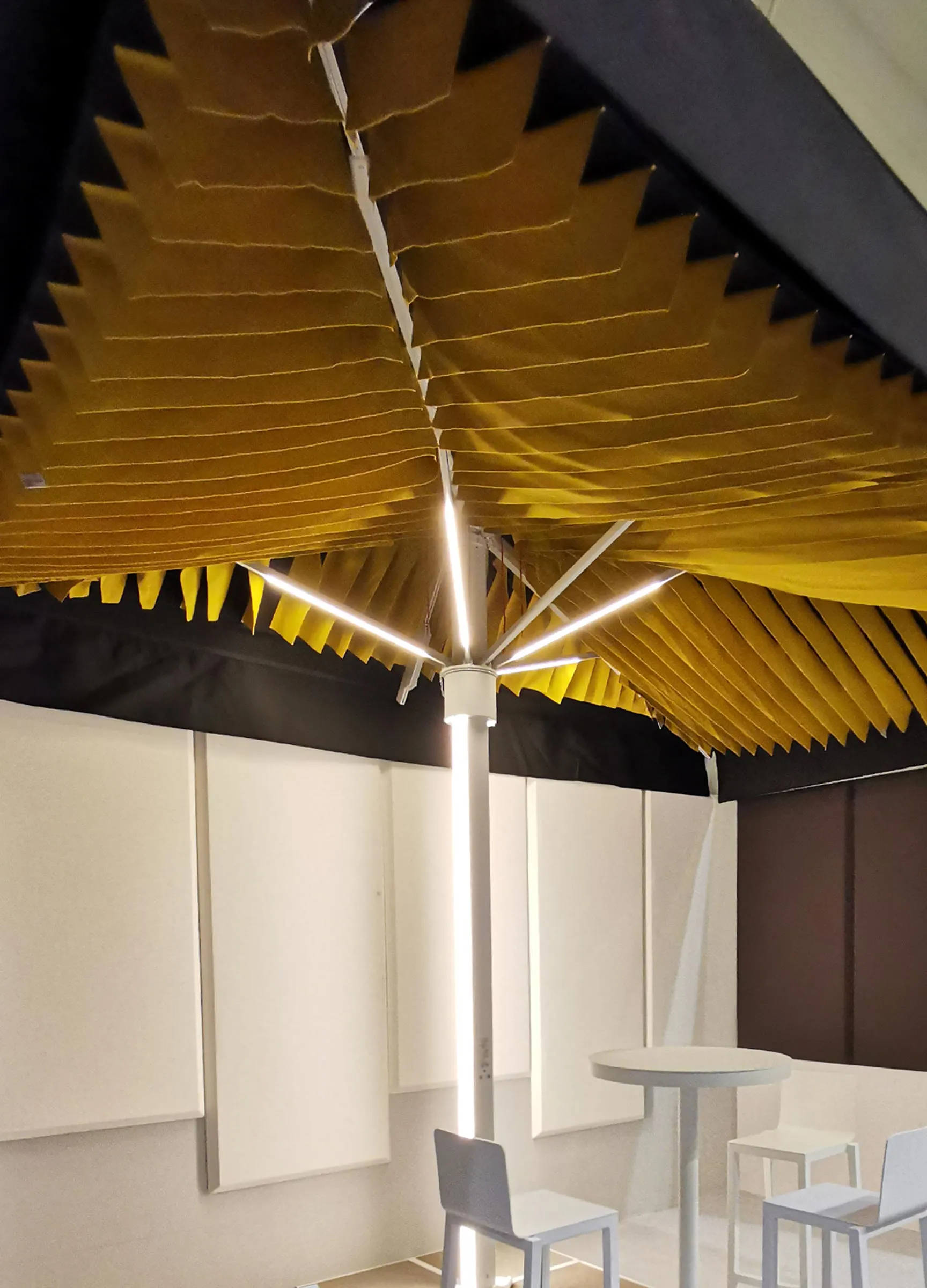 Absorbrella uses advanced sound-absorbing materials that capture sound waves, efficiently reducing noise pollution. Specifically designed for terraces and outdoor areas, this system is installed on IASO parasols, pergolas, and awnings, offering a sustainable and high-impact solution to enhance the experience in busy environments.