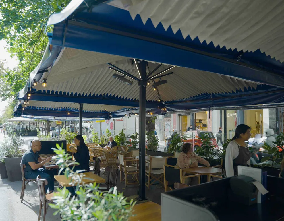 Absorbrella is the patented solution that helps the HORECA sector and municipalities reduce noise on terraces and outdoor spaces, improving acoustic comfort for both neighbours and customers.