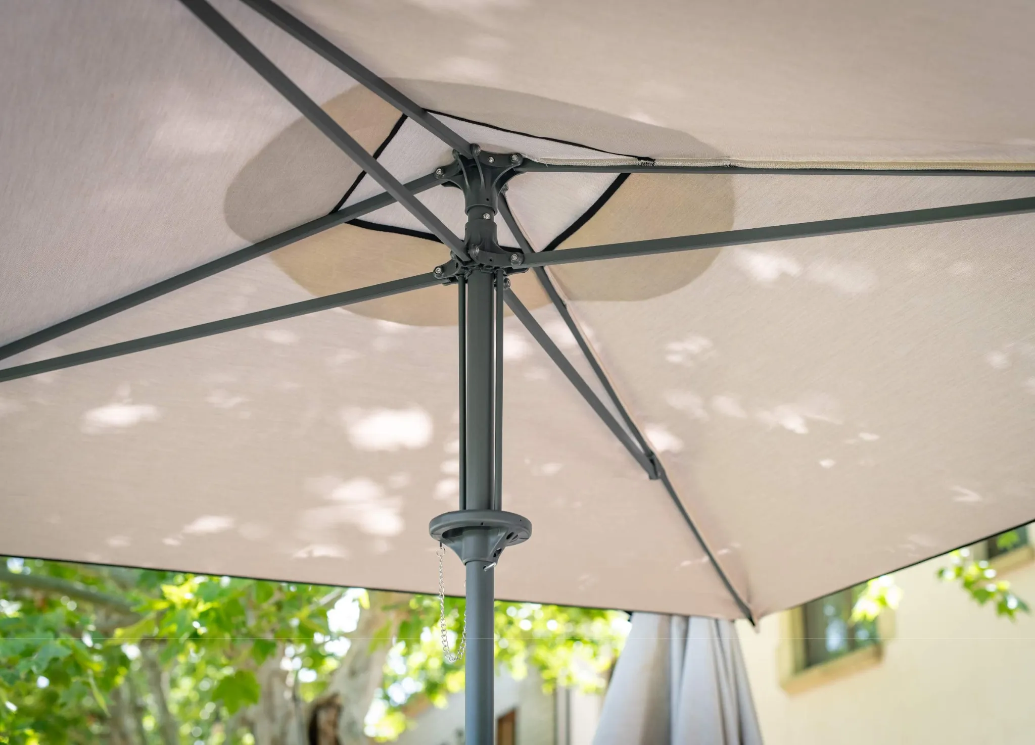 Star Lit está pensado para ofrecer una experiencia ágil y cómoda en el día a día. Su estructura optimizada combina resistencia y ligereza, lo que lo convierte en un parasol versátil para terrazas con alta rotación de mesas. Gracias a su sistema de apertura push-up con bloqueo por pasador, la manipulación es sencilla, intuitiva y rápida incluso en servicios exigentes. Su diseño limpio y su capacidad de personalización lo hacen perfecto para negocios que desean proyectar una imagen cuidada y profesional sin complicaciones. Disponible en distintas combinaciones de color y preparado para integrar impresión corporativa, Star Lit es una opción práctica y funcional que no compromete la estética.