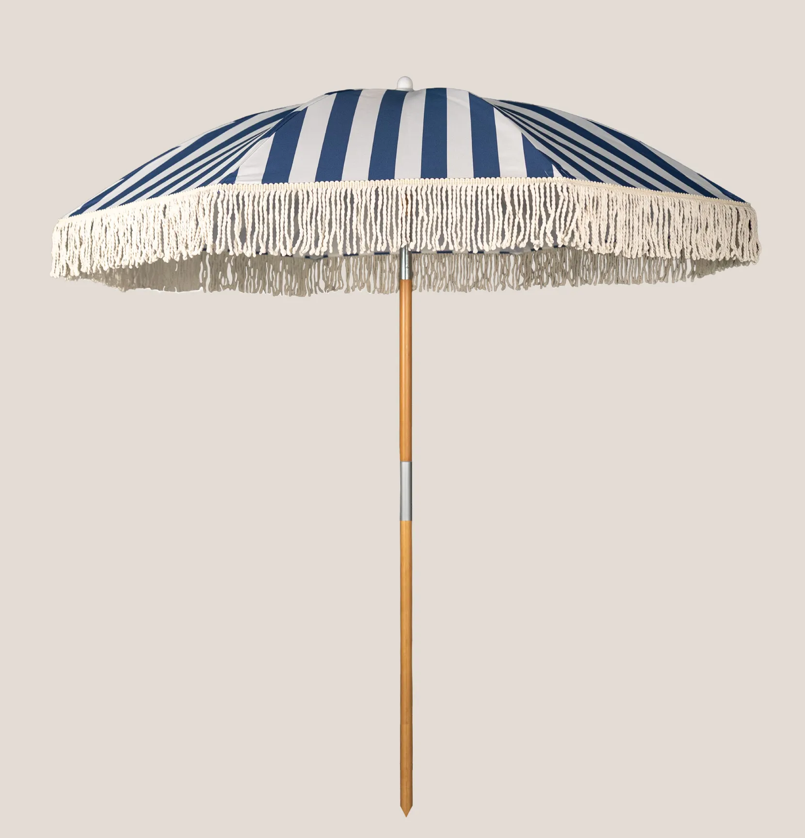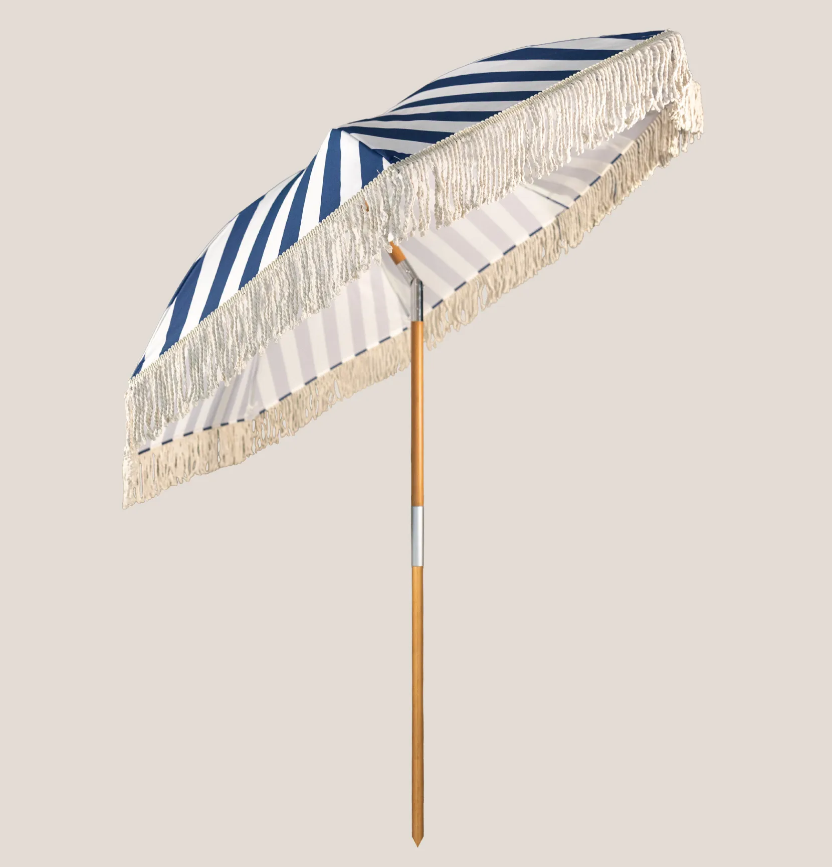 Descubre Novara, el parasol compacto que lleva al exterior un lenguaje fresco, ligero y lleno de personalidad. Su estructura de bambú natural, la lona listada en azul marino y blanco y el acabado con flecos dibujan una presencia más desenfadada, pensada para acompañar jardines, terrazas y piscinas con un acento natural y un guiño al imaginario cabana. Su formato Ø 1,8 m y su configuración centrada refuerzan una propuesta ágil, decorativa y fácil de integrar.