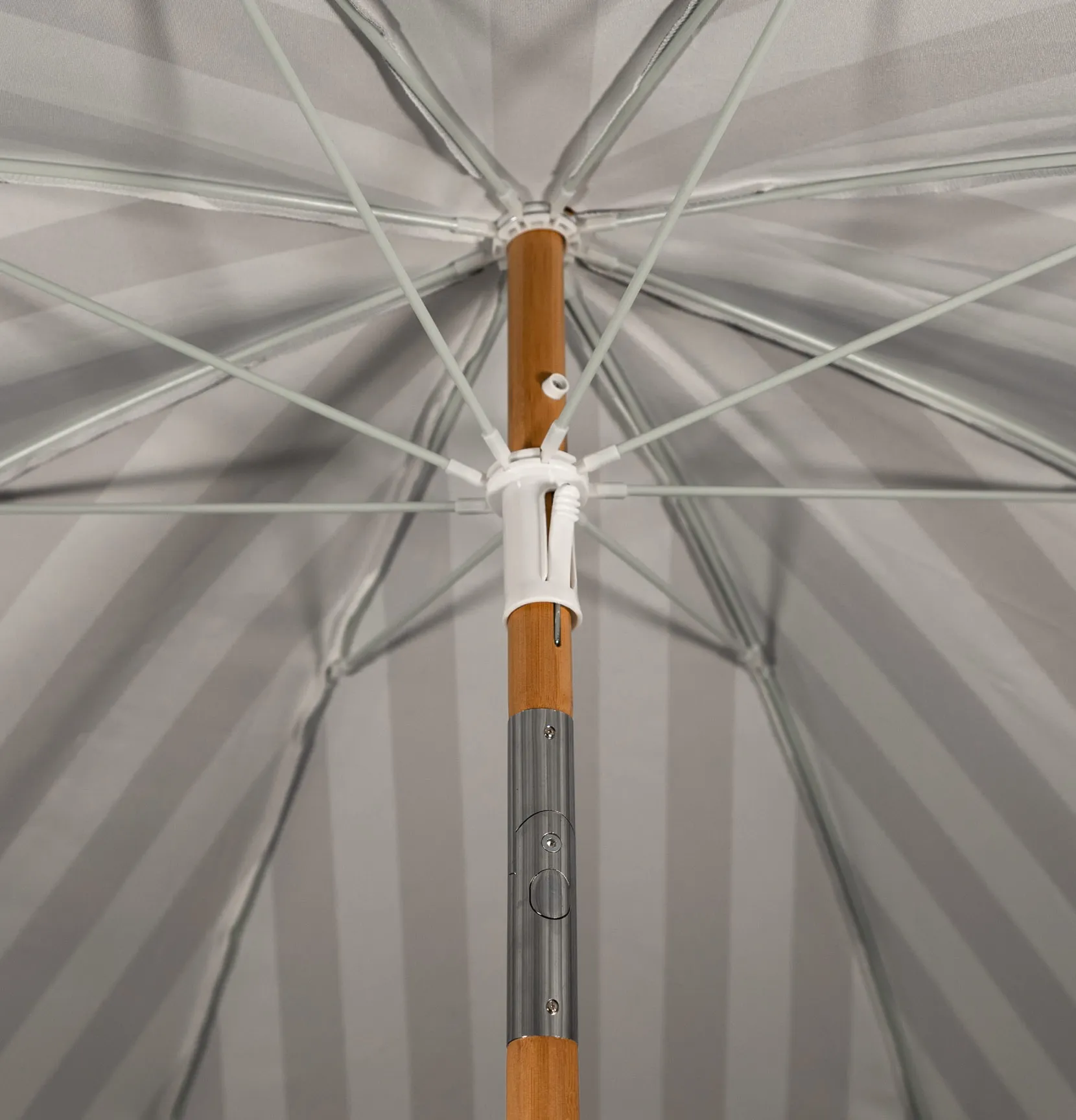 Novara concentra en Ø 1,8 m la sombra y el carácter de un pequeño club de playa, con una escala perfecta para acompañar tumbonas, mesas auxiliares o rincones de descanso.