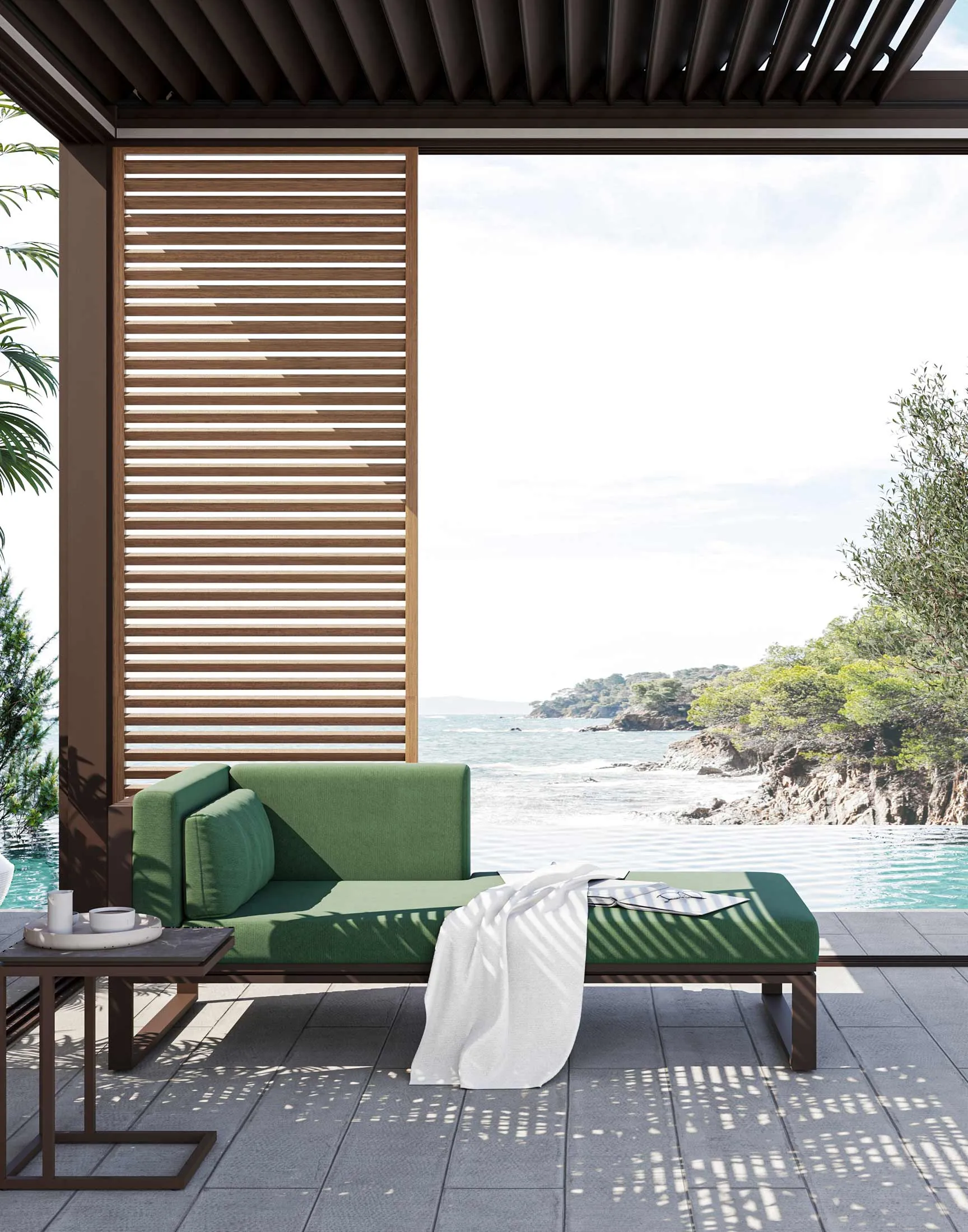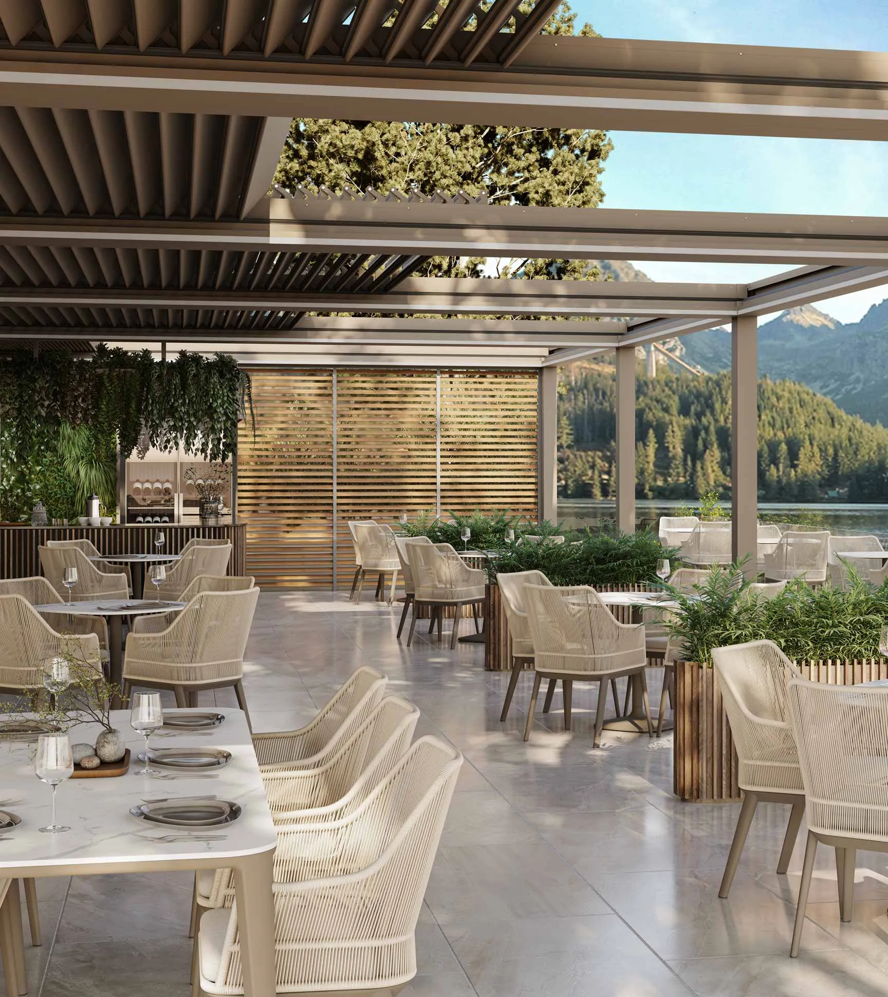 Gaia es una pérgola bioclimática retráctil que combina diseño minimalista y contemporáneo con la funcionalidad de lamas retráctiles para transformar espacios exteriores de lujo.