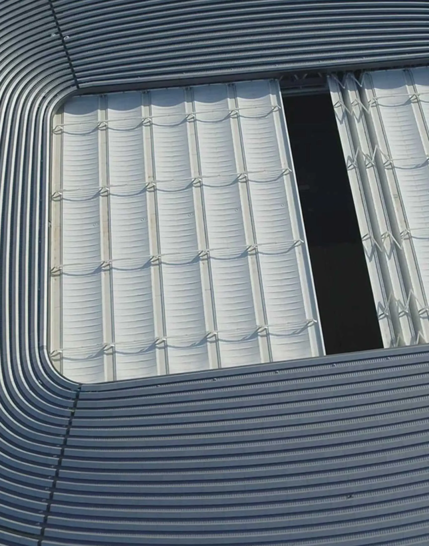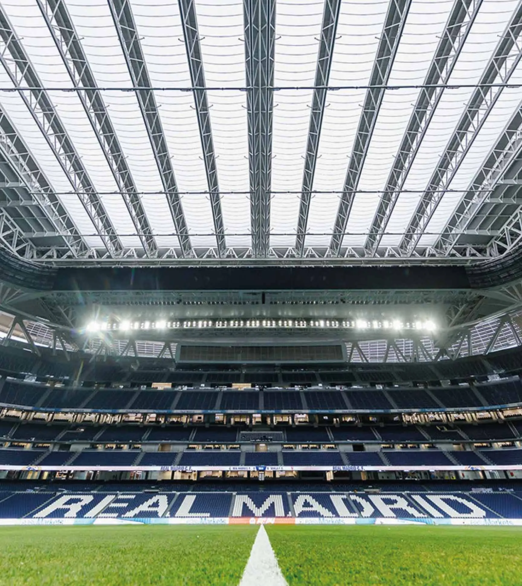 La intervención de IASO en el Santiago Bernabéu representa un hito técnico en cubiertas textiles móviles. El sistema desarrollado permite el inflado y desinflado automatizado de cojines de ePTFE, que se pliegan mediante un mecanismo sincronizado con la estructura de cubierta. Esta solución combina ingeniería de precisión, control climático y facilidad de mantenimiento.