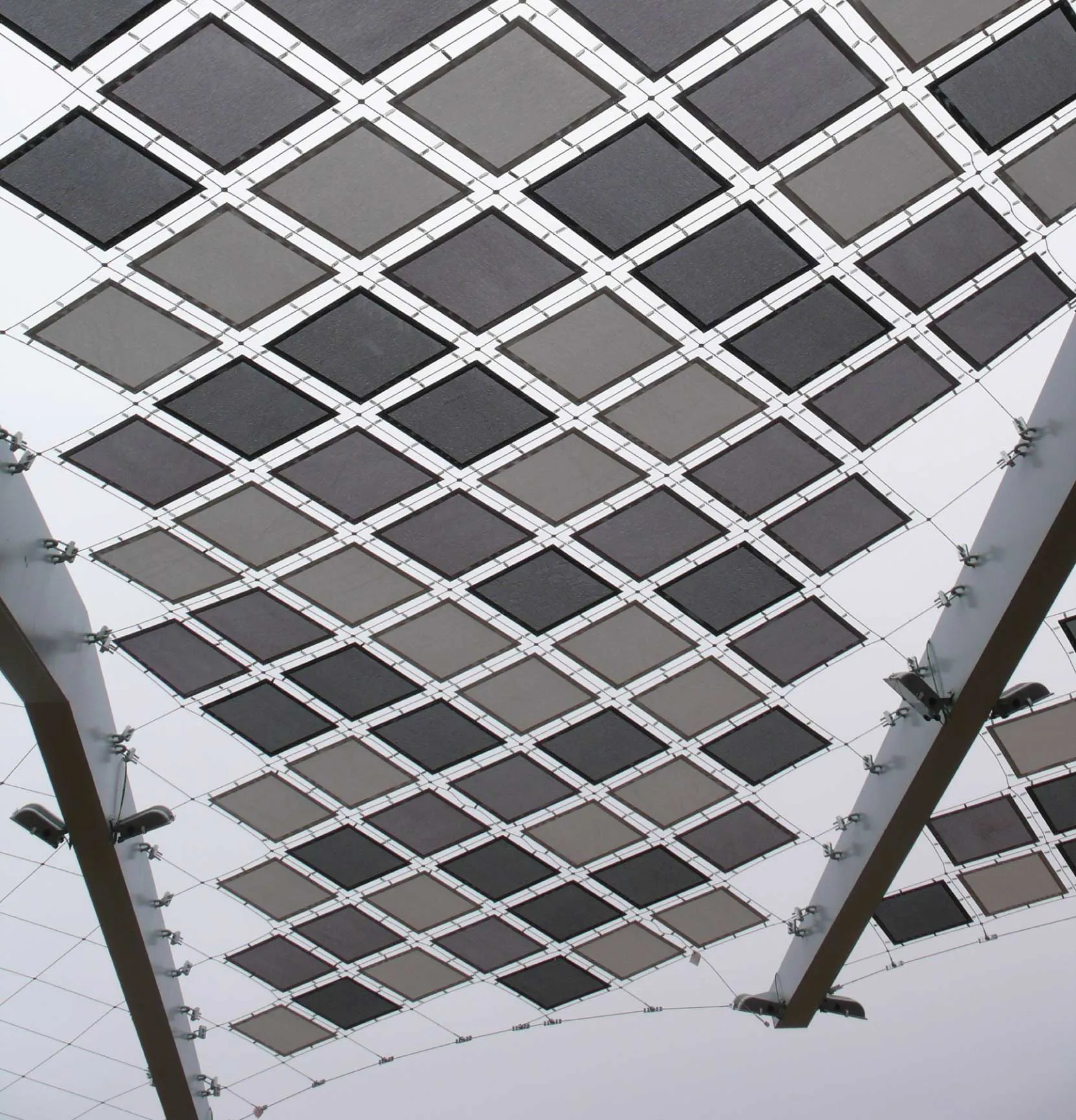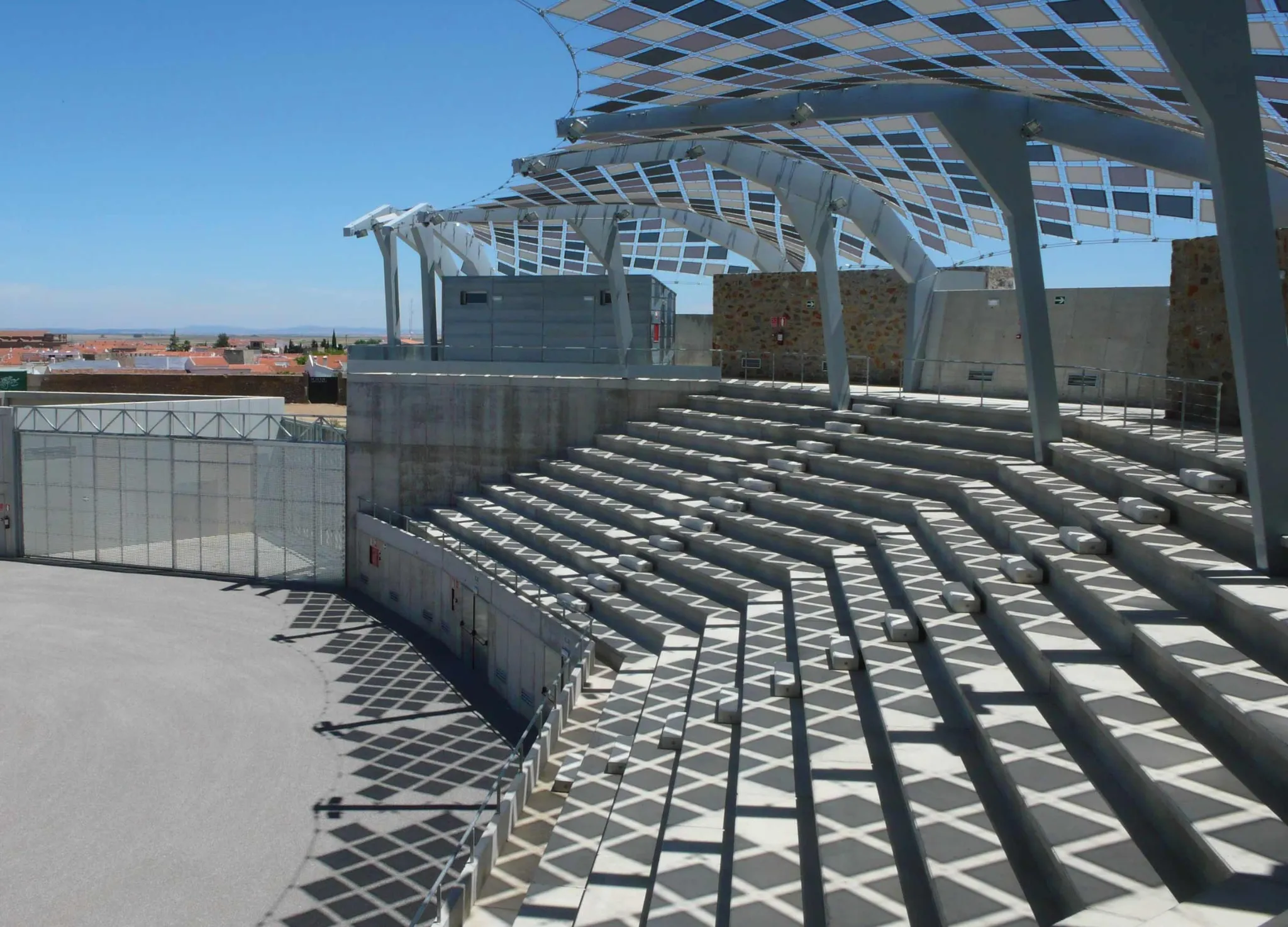 En el Auditorio de Llerena, en Badajoz, se ha instalado una cubierta de malla de cables de más de 1.500 m² divida en nueve partes.