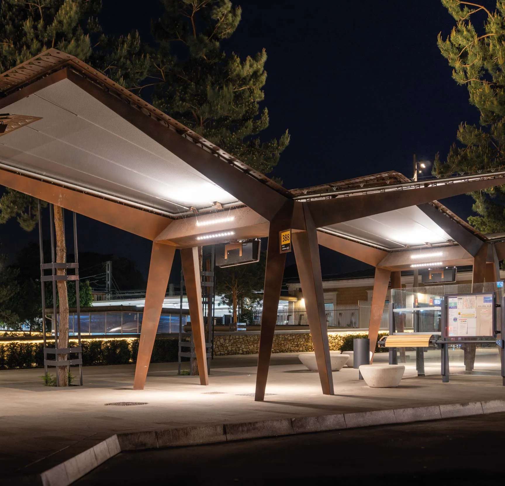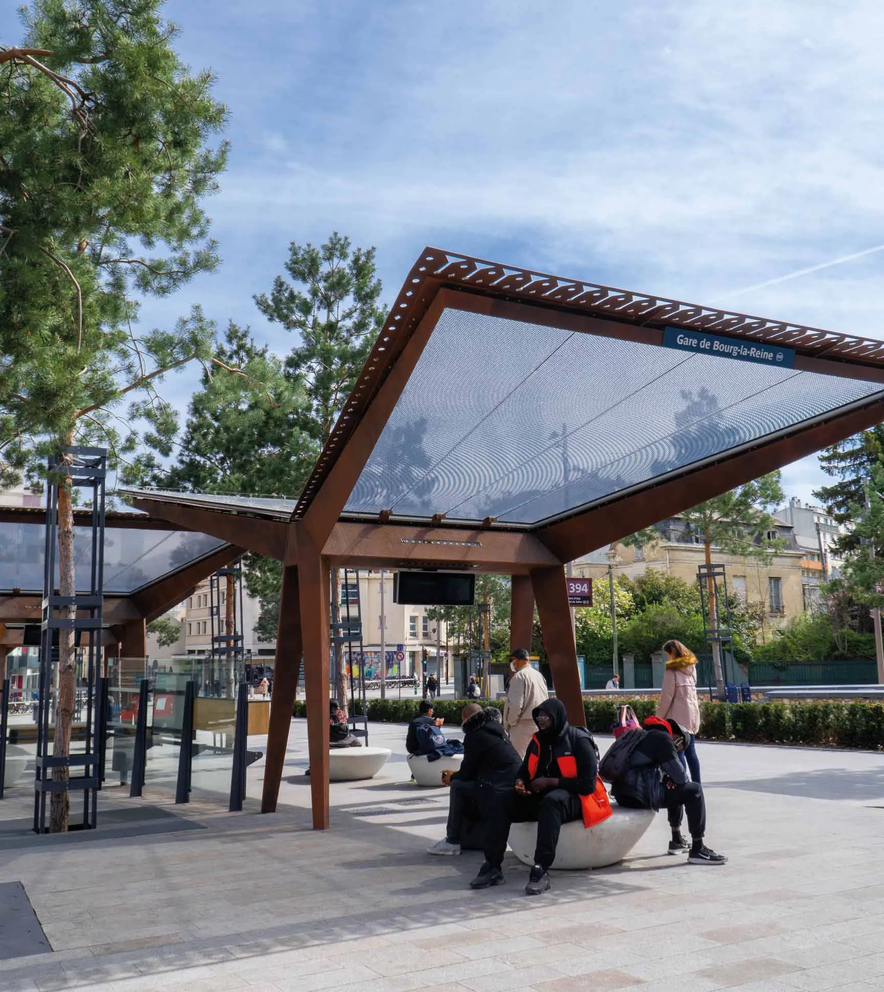 Este proyecto consiste en el reacondicionamiento de la estación de autobuses de Bourg La Reine, incorporando 4 marquesinas independientes para proteger a los viajeros de las inclemencias meteorológicas.