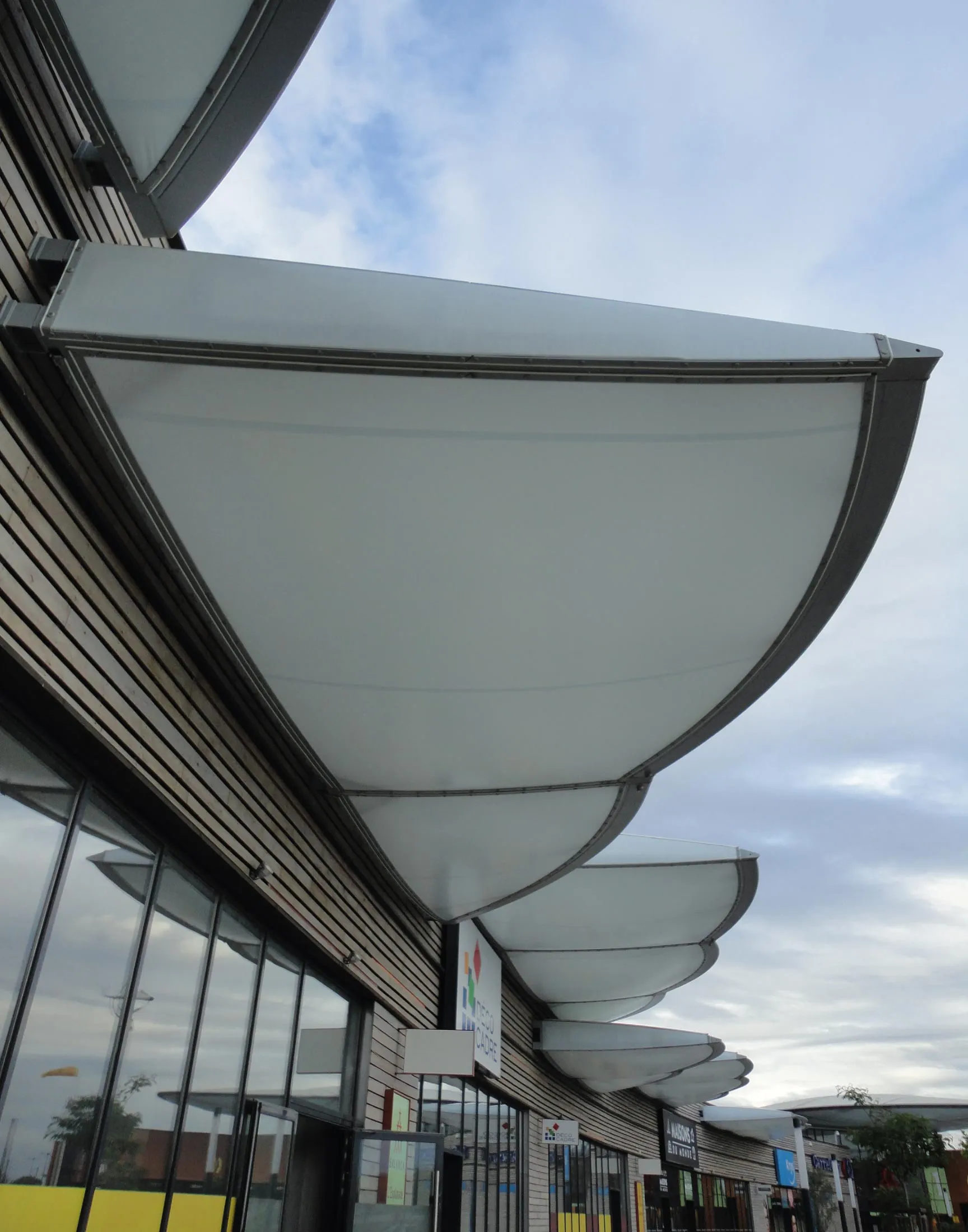Por otra parte, aprovechando esta sustitución y en acuerdo con el arquitecto, se ha aumentado la curvatura de la membrana con el fin de disminuir las tensiones en la lona y mejorar de esta manera la durabilidad del tejido.