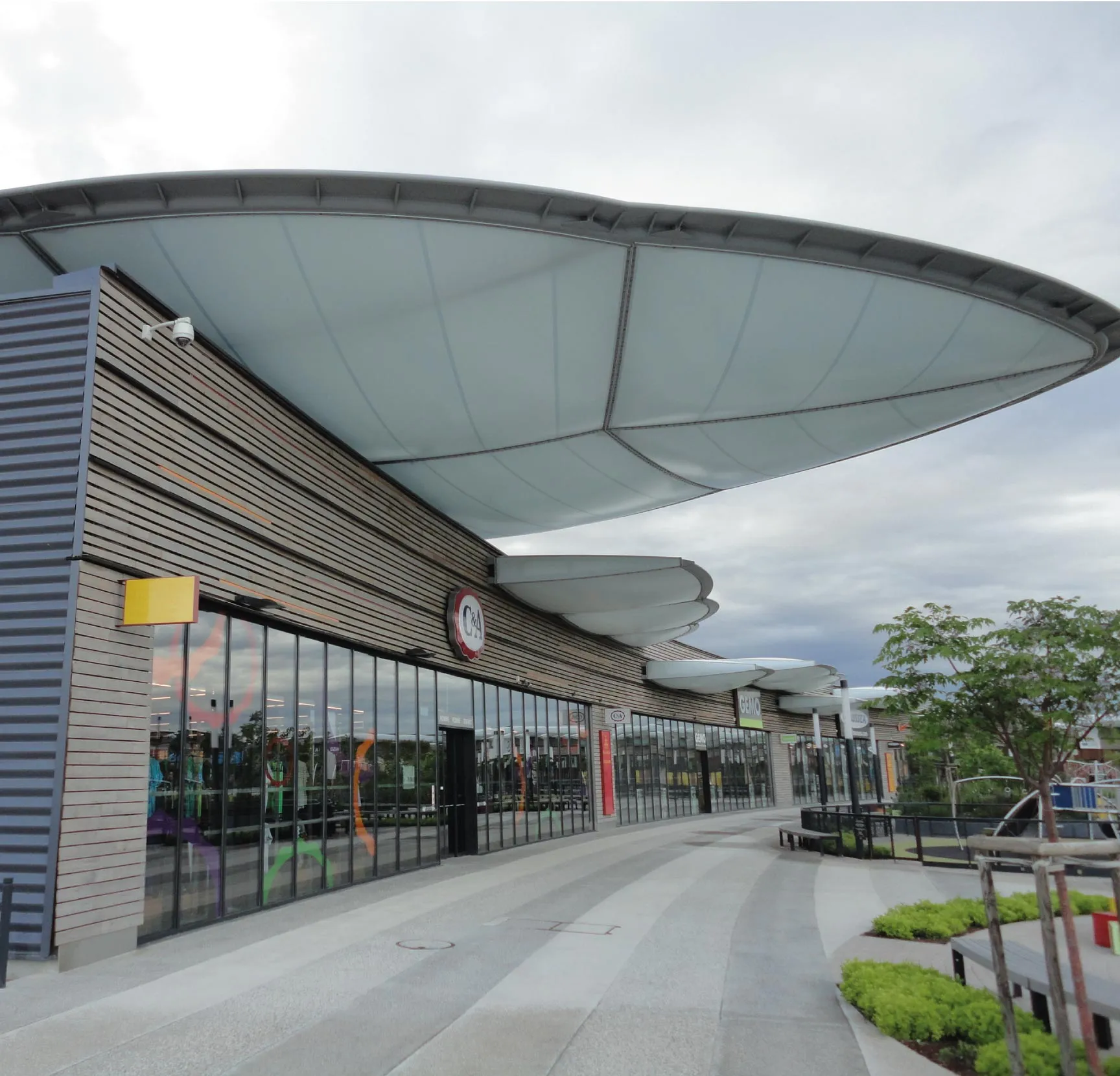El objetivo de estas marquesinas hinchables es indicar la ubicación de las entradas al CC Carrefour Claira y proteger a los clientes de la lluvia en estas zonas.