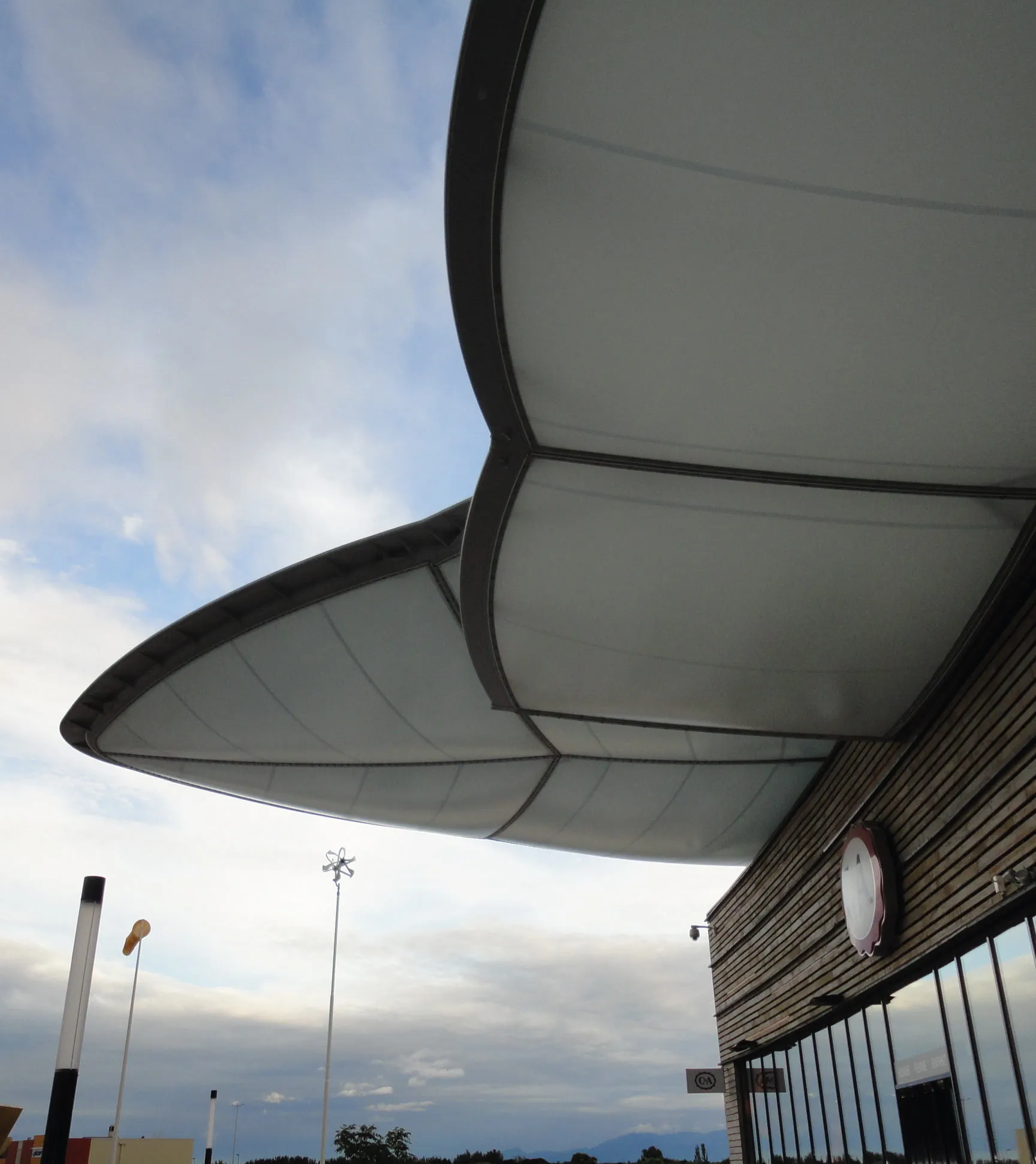 Tras el reemplazo de dos de las cuatro marquesinas existentes, se nos solicitó la sustitución de las lonas superiores de la marquesina sobre la entrada S2 con el objetivo de homogeneizar el aspecto visual de las diferentes entradas.