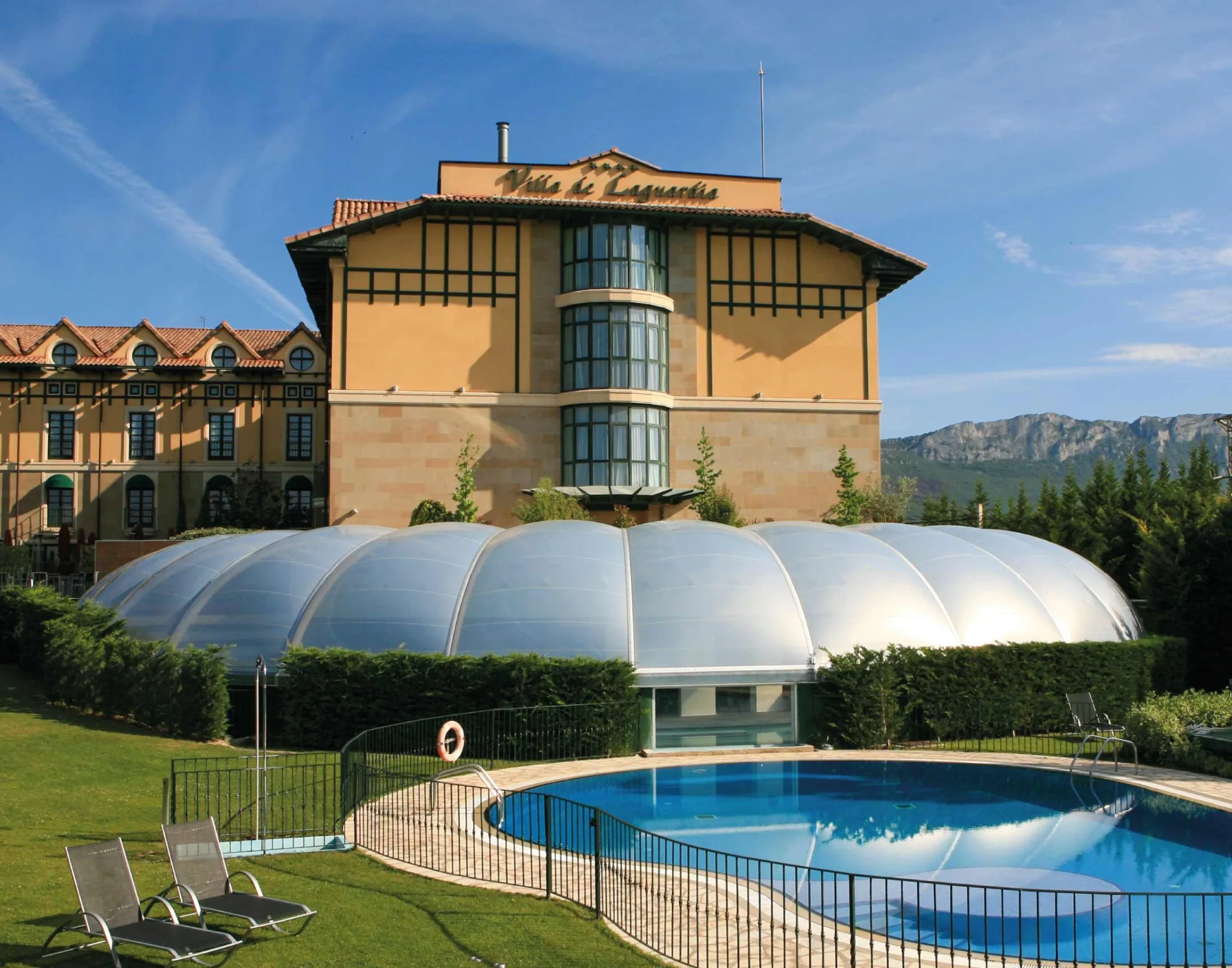 El hotel de Villa de Laguardia amplió su actividad con una nueva área destinada a spa y wellness. La zona de aguas se caracteriza por su cubierta transparente de ETFE. La luminosidad y la sensación de hallarse al aire libre son las cualidades más destacadas de este nuevo espacio. El nuevo espacio del Hotel Villa de Laguardia, en Álava, se define como una zona de confort y tranquilidad para sus clientes.