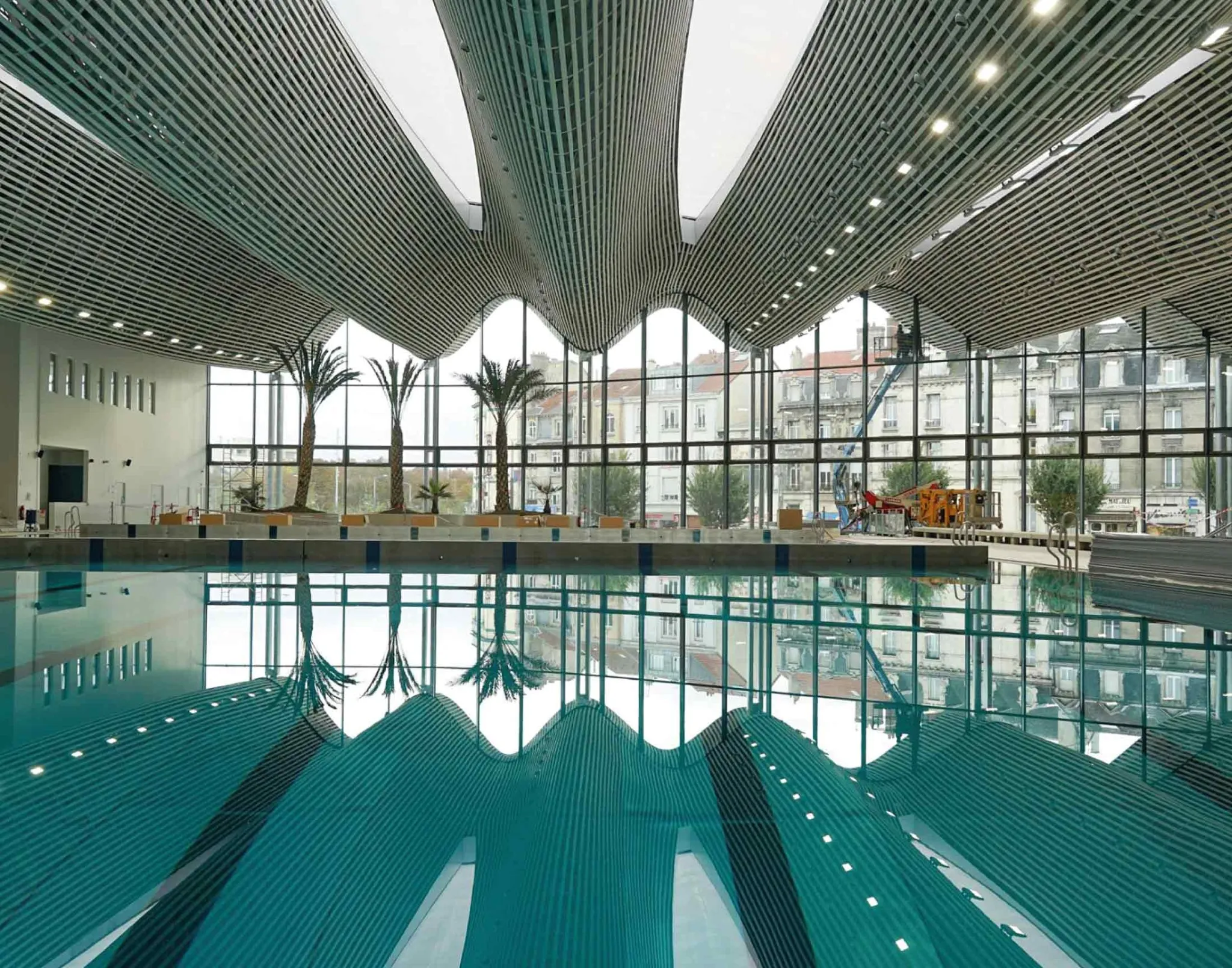 Este proyecto trata de dotar de una entrada natural de luz al complejo aqualúdico en la ciudad de Reims. Uno de los elementos protagonistas de la intervención es la cubierta que protege el complejo. Con ella se intenta crear un espacio de confort, garantizando la entrada de luz natural y protegido de las inclemencias, siendo un espacio lúdico al servicio de los usuarios.