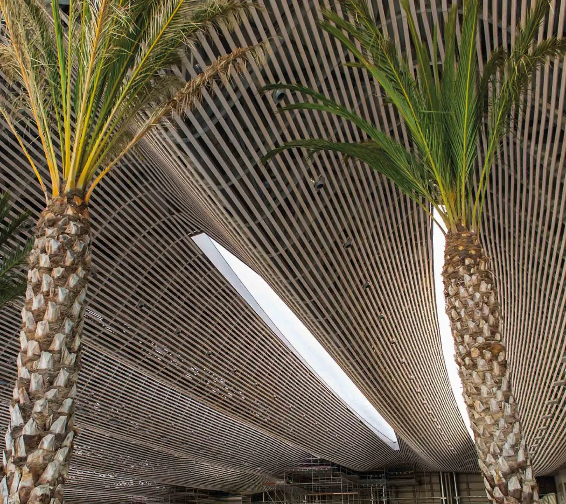 La membrana que cubre los óculos se realiza con un sistema de lámina ETFE de 3 capas de cojín hinchado.