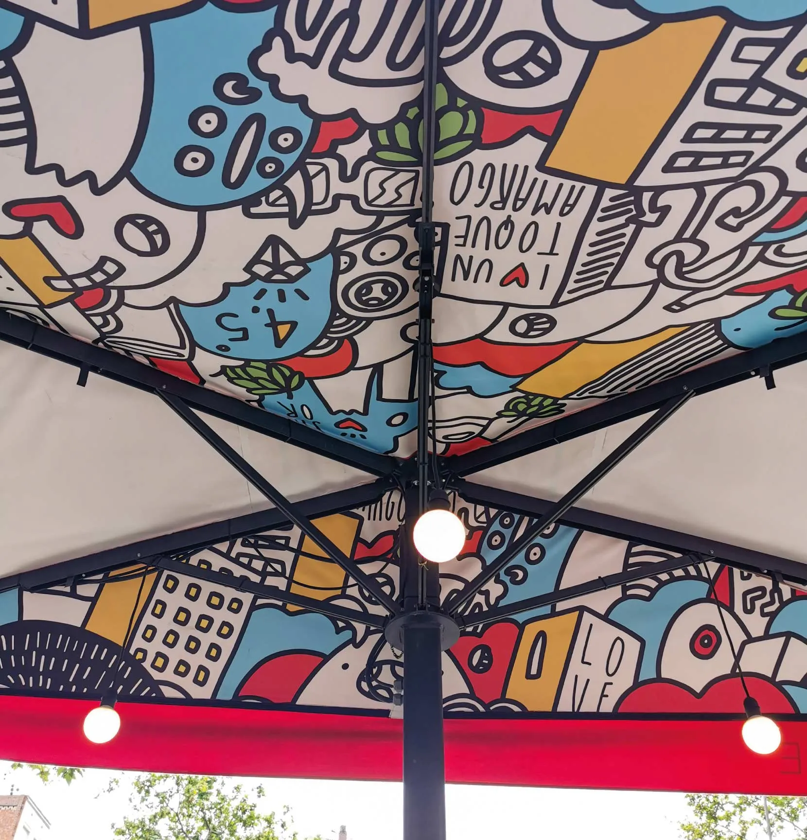 Transforma tus parasoles, toldos y pérgolas en elementos únicos. Descubre cómo nuestras técnicas de personalización dan vida a tu marca.