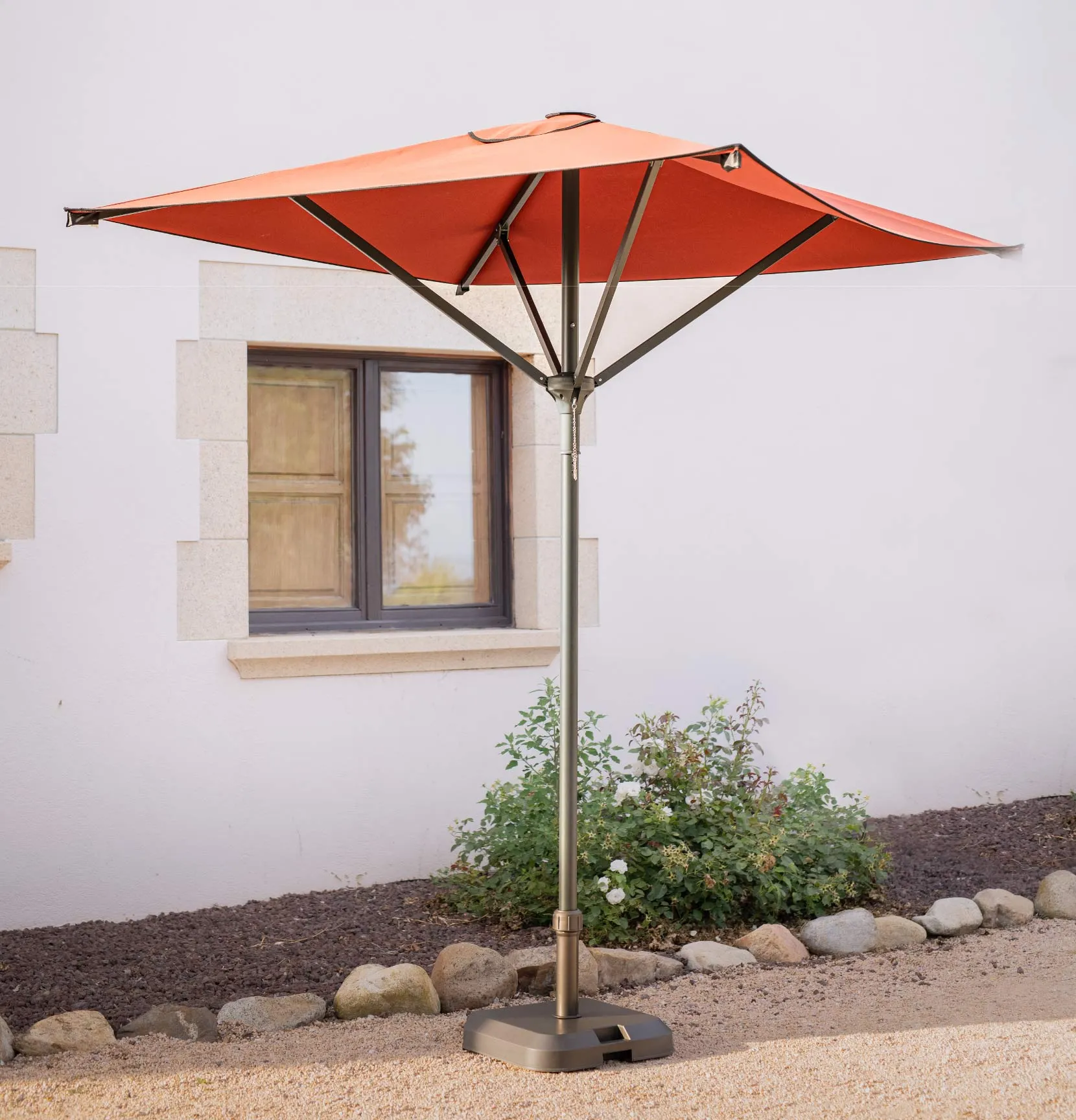 Star One a été conçu pour offrir des performances tout au long de l’année. Sa structure renforcée garantit une stabilité exceptionnelle, idéale pour les espaces extérieurs exposés à des conditions variables. Plus robuste que les autres modèles de la collection Small, il est pensé pour apporter fiabilité et prestance sur les terrasses où le mobilier doit faire preuve de solidité sans renoncer au design. Le mât et les baleines sont fabriqués à partir de matériaux durables, conçus pour résister à une utilisation intensive sans se déformer. Son esthétique sobre et ses options de personnalisation en font l’allié parfait des marques souhaitant se distinguer avec élégance et constance.