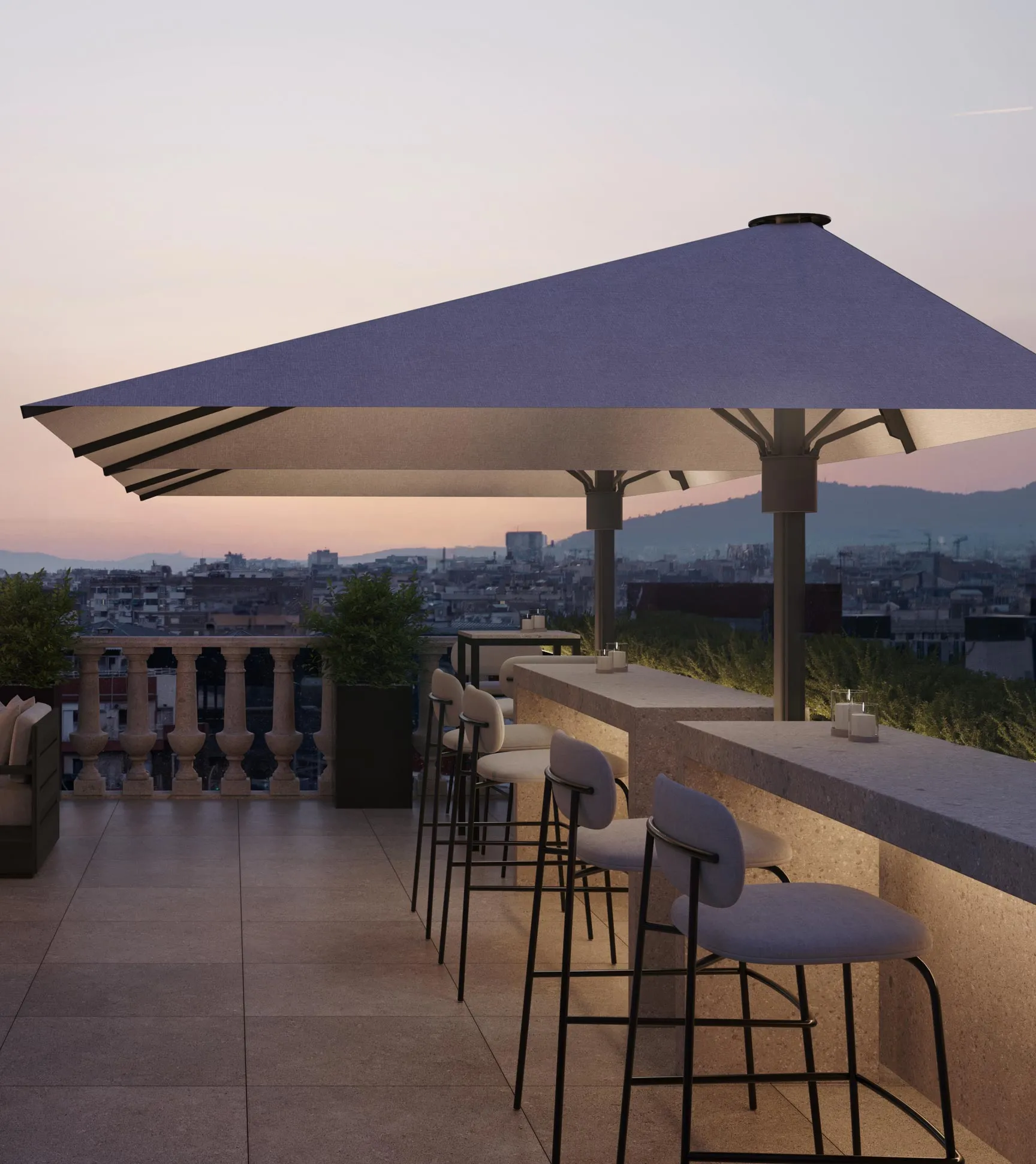 O guarda-sóis Azores D, com o seu mastro descentrado, é a solução perfeita para terraços pequenos e espaços estreitos. O seu design inovador optimiza a área útil sob o guarda-sóis, eliminando obstáculos e proporcionando maior conforto para os utilizadores. Fabricado com uma estrutura resistente ao vento e materiais de alta qualidade, o Azores D combina estética sofisticada e praticidade, sendo ideal para terraços de difícil acesso que exigem funcionalidade sem comprometer o estilo.
