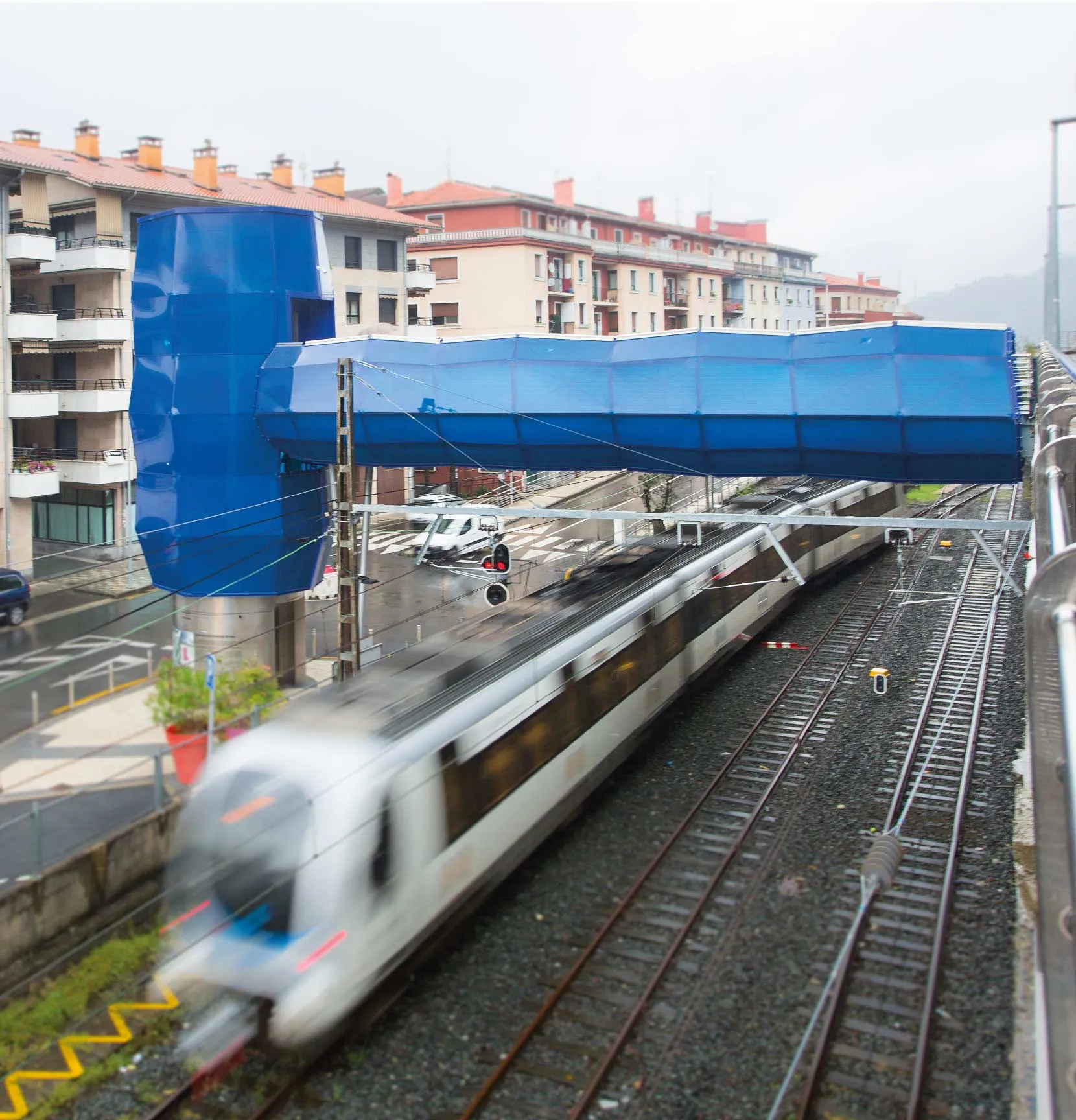 As unidades de lona definidas são confeccionadas em uma única peça e possuem, em seu perímetro inferior, um tubo de PVC embutido, através do qual são fixadas ao perfil de alumínio. As membranas cobrem a estrutura metálica para oferecer proteção contra o vento e conferir um aspecto moderno e esteticamente refinado à passarela.