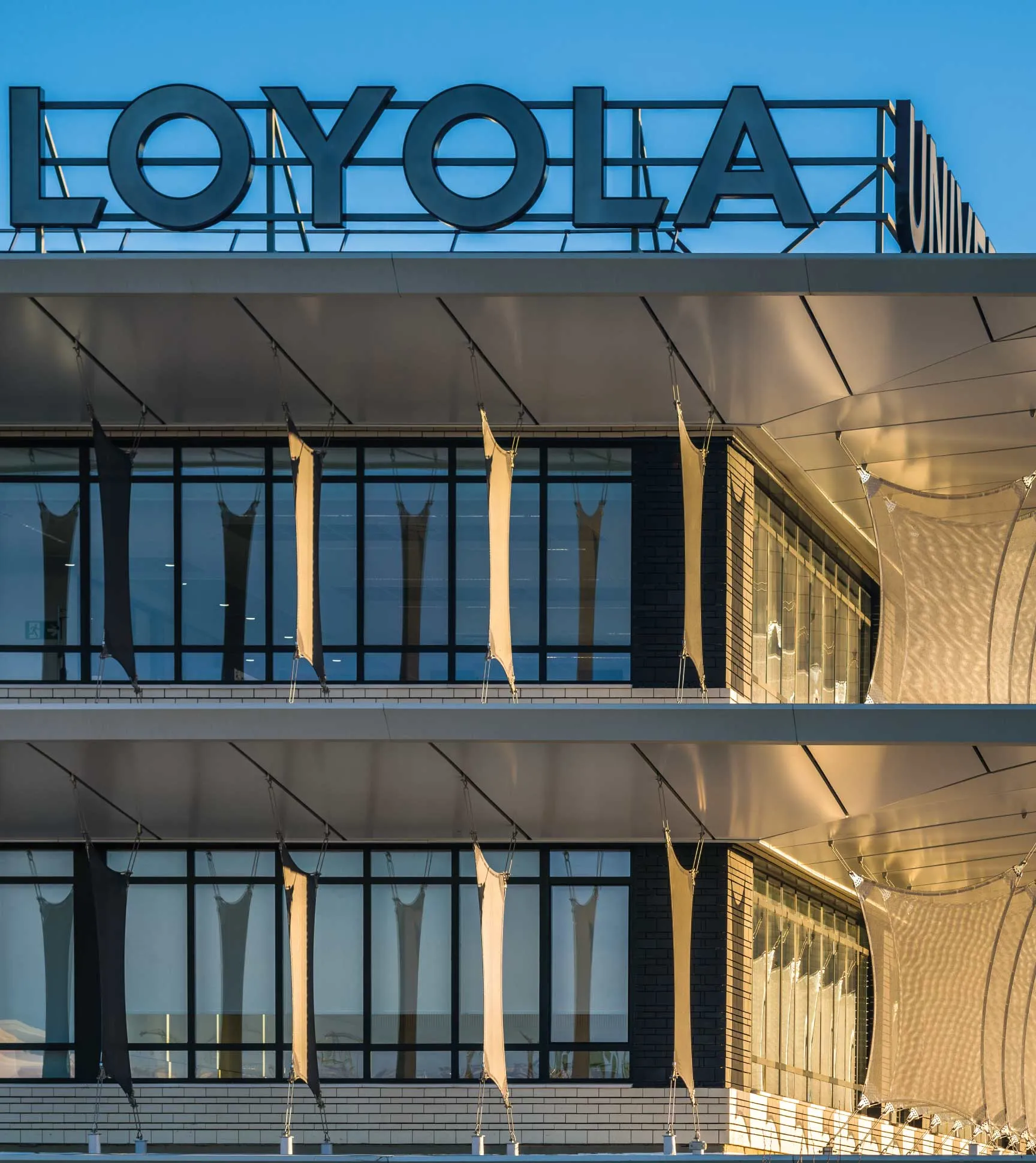 Este projeto consiste na FASE I do novo Campus Universitário de Loyola em Dos Hermanas (Sevilha). Nesta fase, são integrados um edifício principal para 2500 alunos, uma biblioteca, um edifício desportivo e uma capela, envoltos por zonas urbanizadas. Os elementos têxteis estão situados no edifício principal, onde se encontram a biblioteca e o recinto desportivo, com uma parede dupla de 5m de largura, constante em todo o perímetro e a todos os níveis.