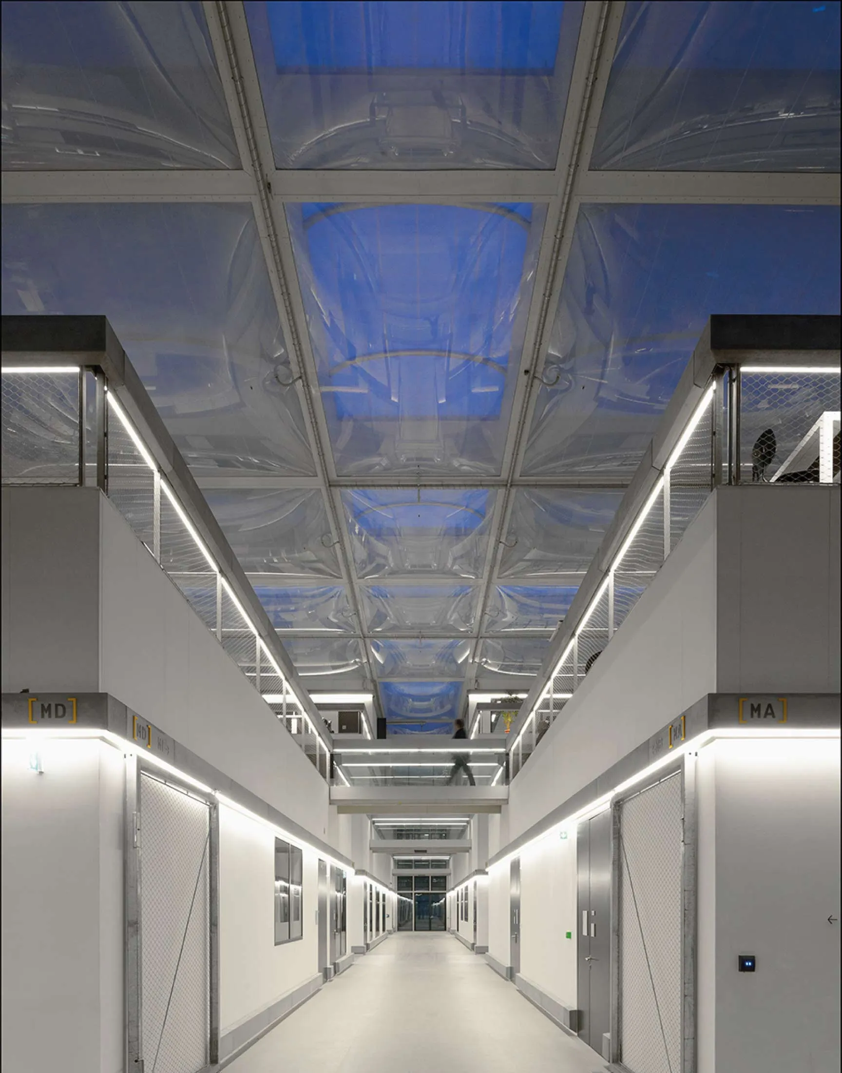 Entre os dois complexos que formam a estrutura encontra-se uma câmara de ar pressurizado que melhora o comportamento térmico e acústico do teto. O facto de circular ar seco dentro da câmara evita a formação de condensação dentro da referida câmara.