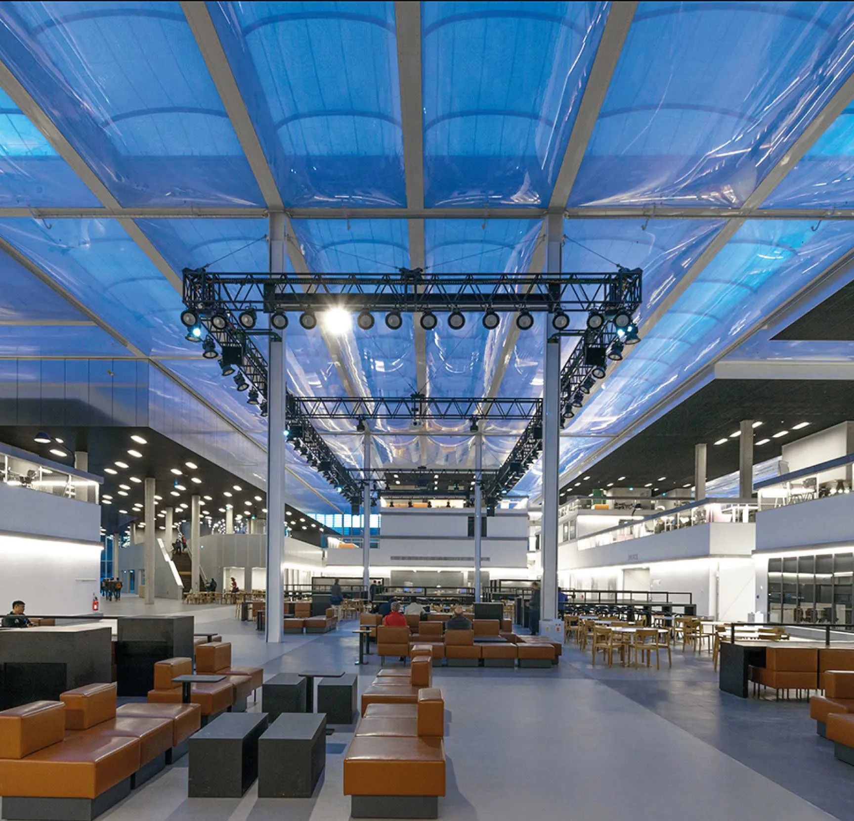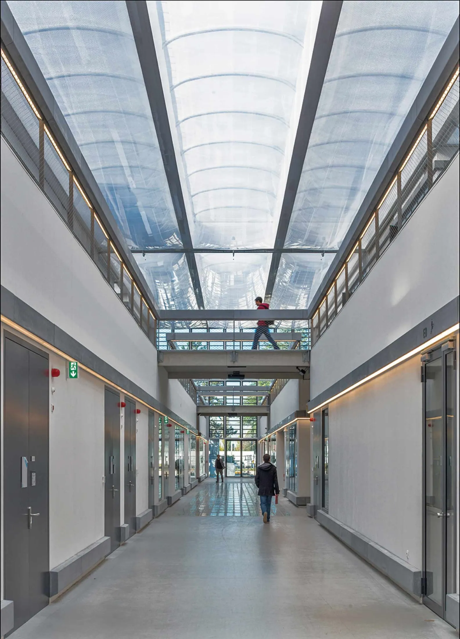 A estrutura para cobrir a escola Centrale Supélec é constituída por duas partes. A superior é formada a partir de um diafragma FX901 esticado que sela o teto, e na inferior foram instaladas almofadas de ETFE de películas translúcidas duplas. Estas almofadas destacam-se pela sua resistência, leveza e transparência. Com isso é obtida uma transmissão de luz natural para o interior do edifício. Além disso, confere um estilo inovador e original.