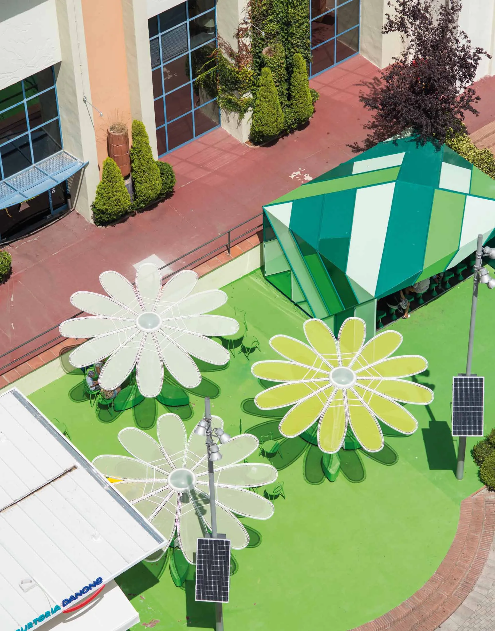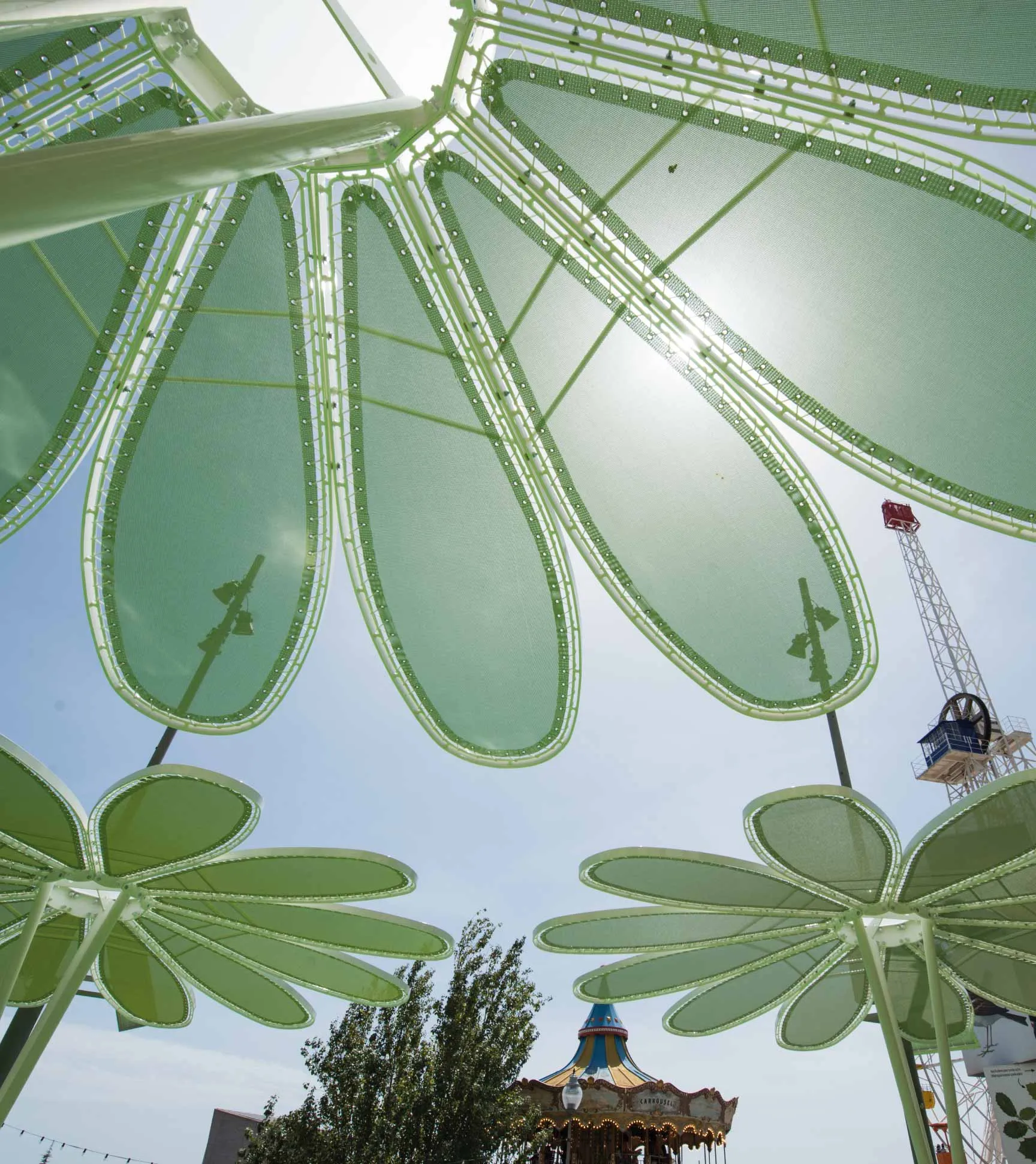 As novas estruturas tensadas reproduzem a grande escala a forma de una margarida de 12 pétalas: os contornos em curvas suaves da estrutura imitam as próprias formas naturais da flor, com as pétalas independentes umas das outras.
