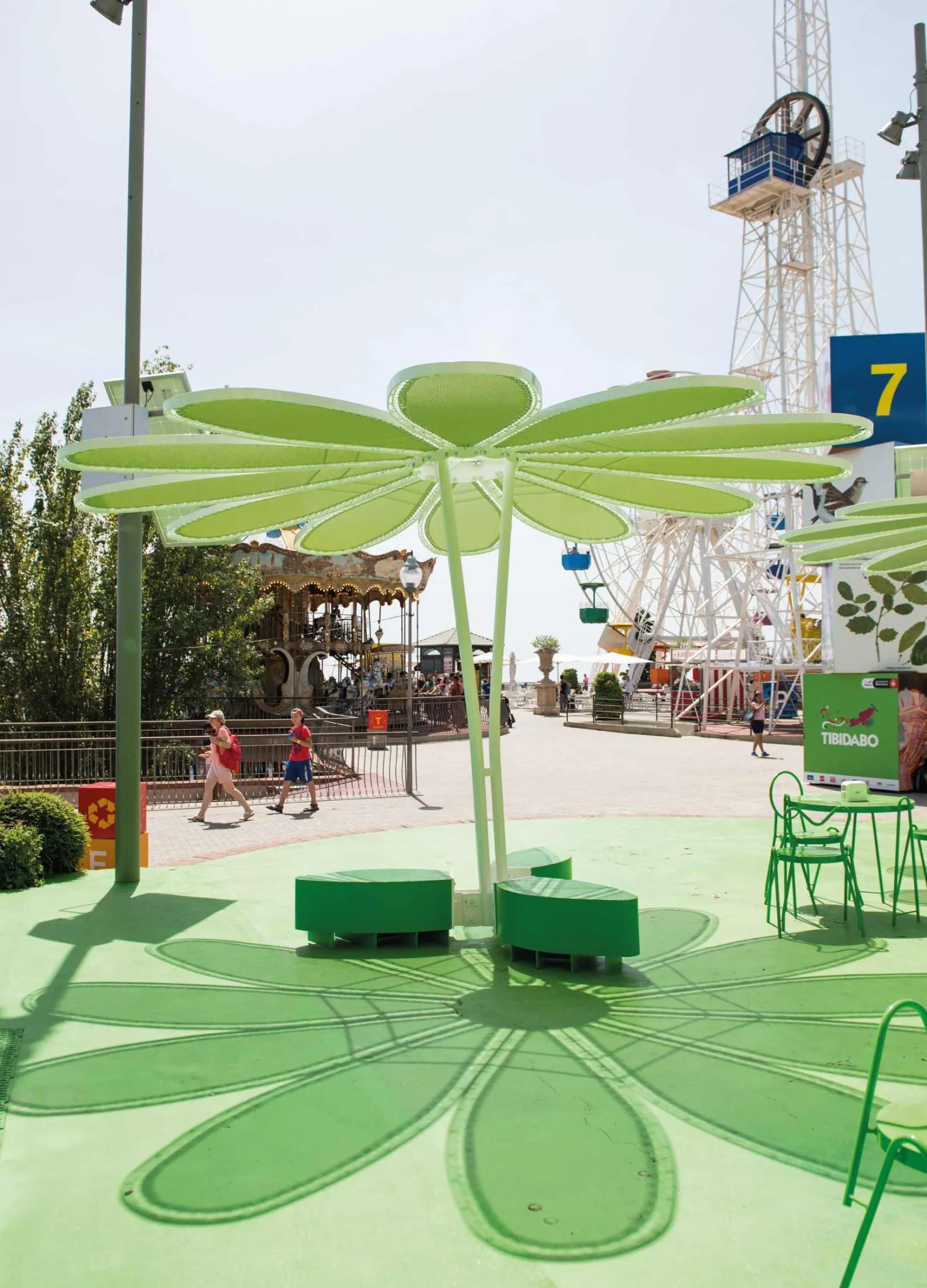 O projeto da remodelação da praça central do Parque de atrações Tibidabo consistiu na construção e instalação de 3 guarda-sóis em forma de margarida.