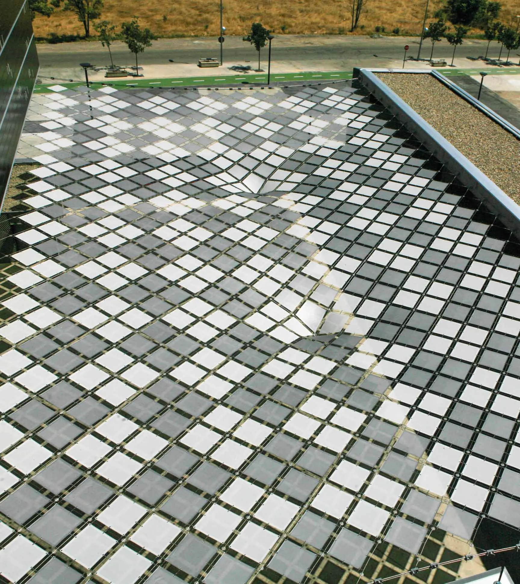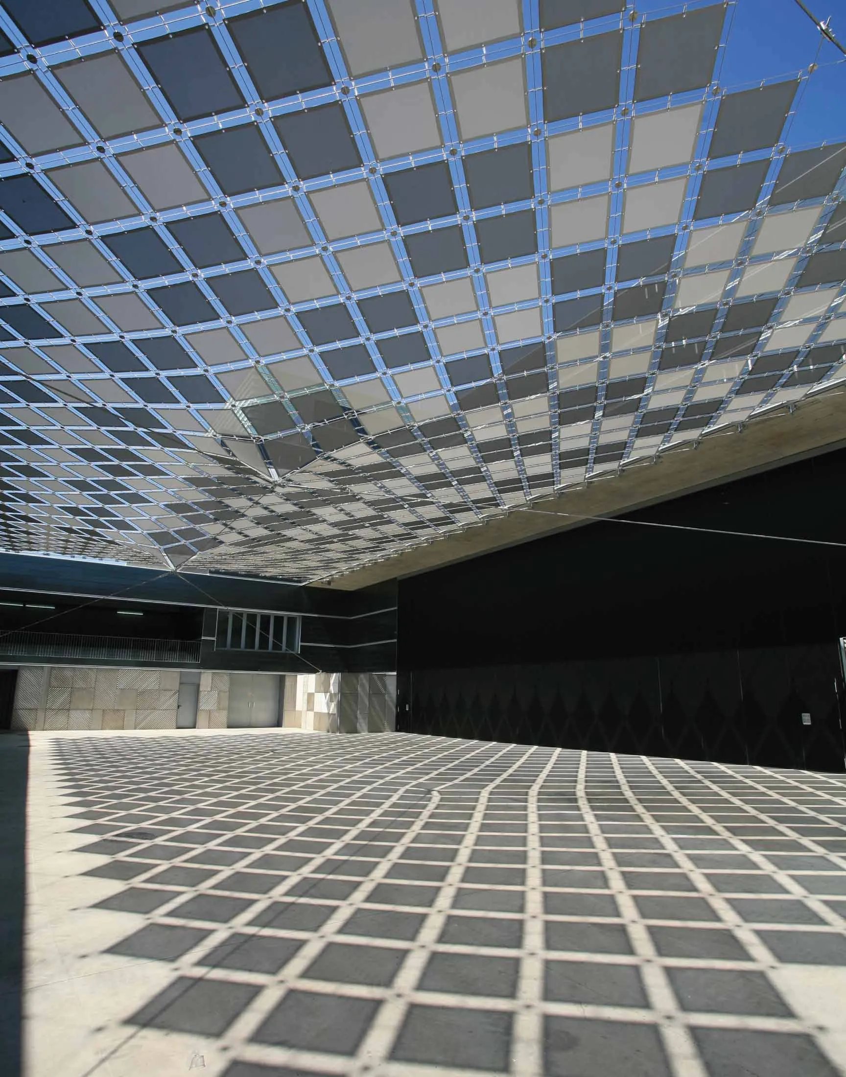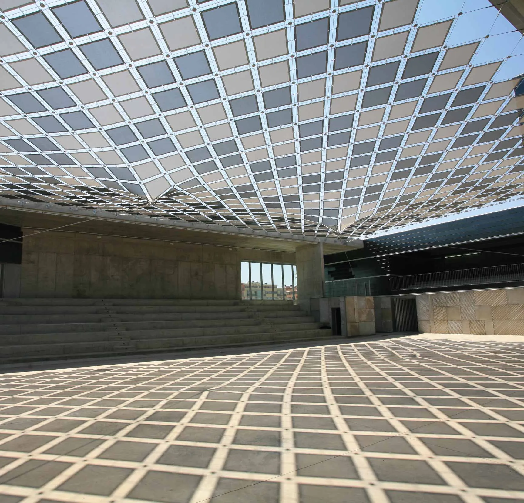 Cobertura de malha de cabos para a proteçáo solar do palco exterior.
